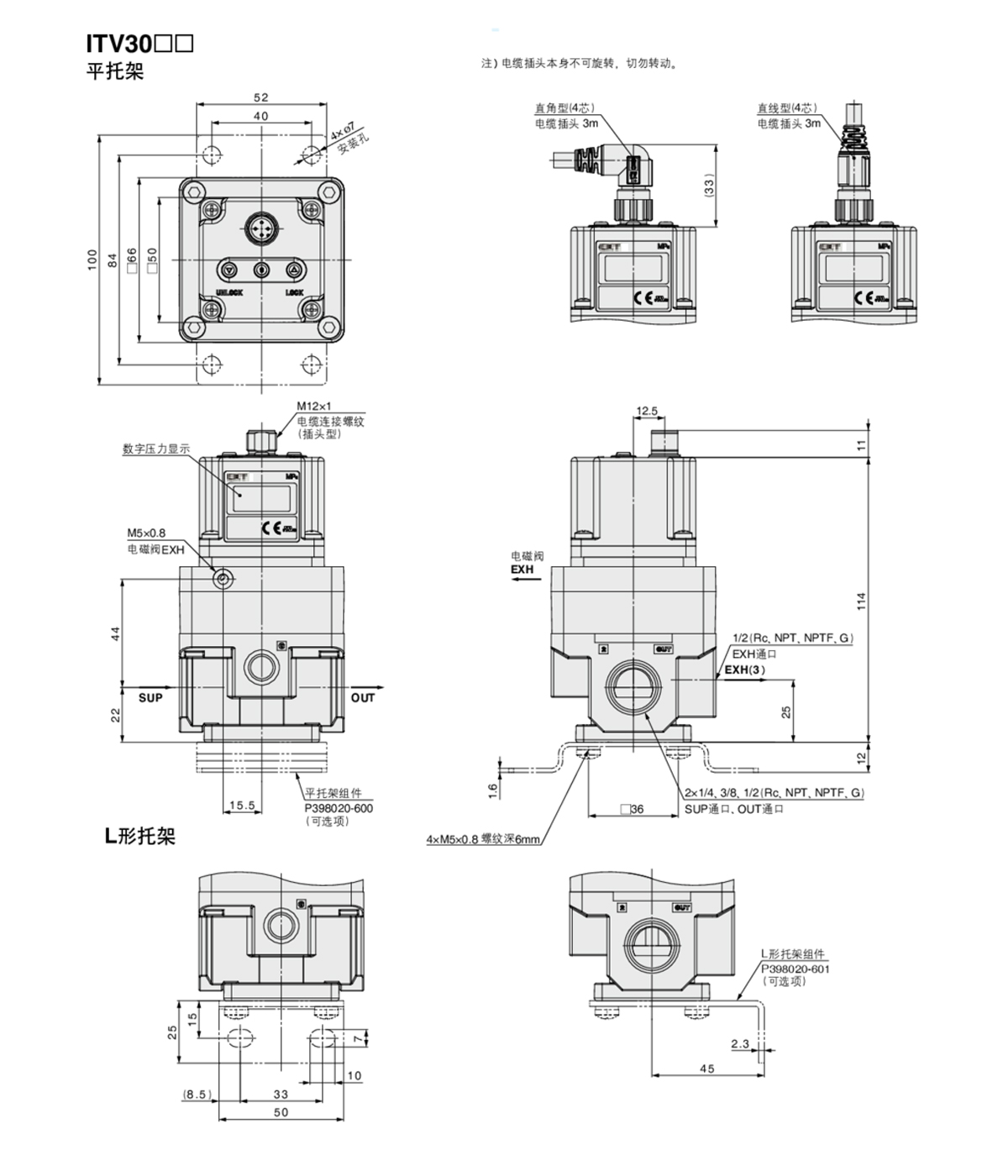 ITV电气比例阀通过电信号无级调节气体压力,实现高精度、连续的气压闭环控制。其核心采用压力传感器实时反馈,结合先导阀动态调节,输出压力与输入信号保持线性关系。具备快速响应(≤0.2s)、高精度(±1%F.S.) 及多压力范围覆盖(-101kPa~0.9MPa) 特性,适配工业自动化中的精密压力控制需求。