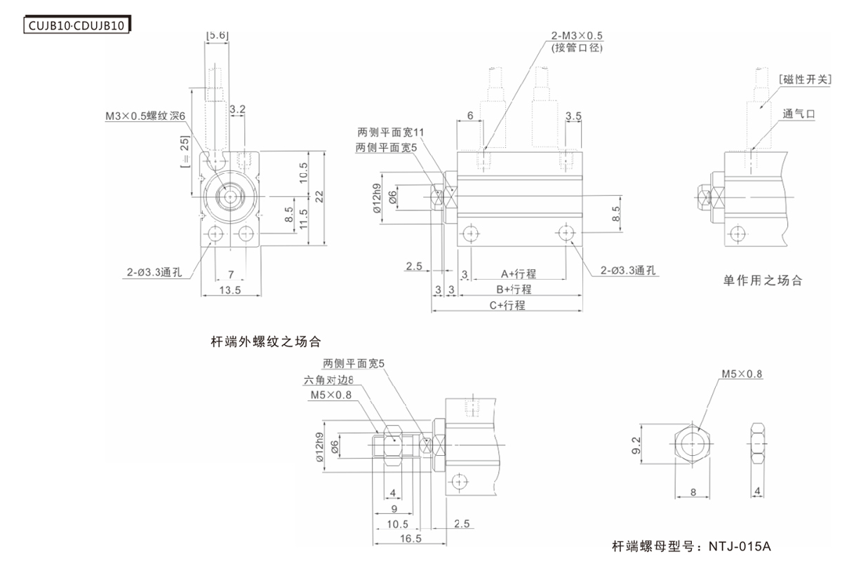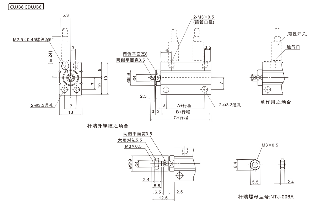CUJB系列小型自由安装型气缸,适用于空间受限工况。其核心特性在于提供基础直线运动驱动的同时,依托结构优化实现高度灵活的机械集成与传感扩展能力。