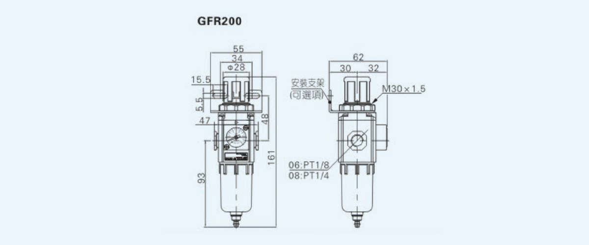 4. 除标准形式外,另有低压型可供选择(最高可调压力0.4MPA);