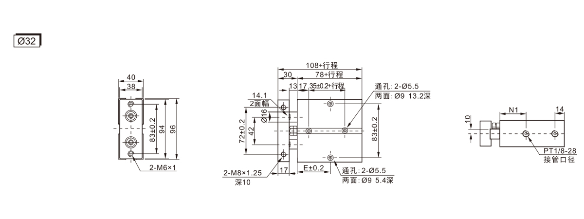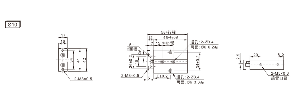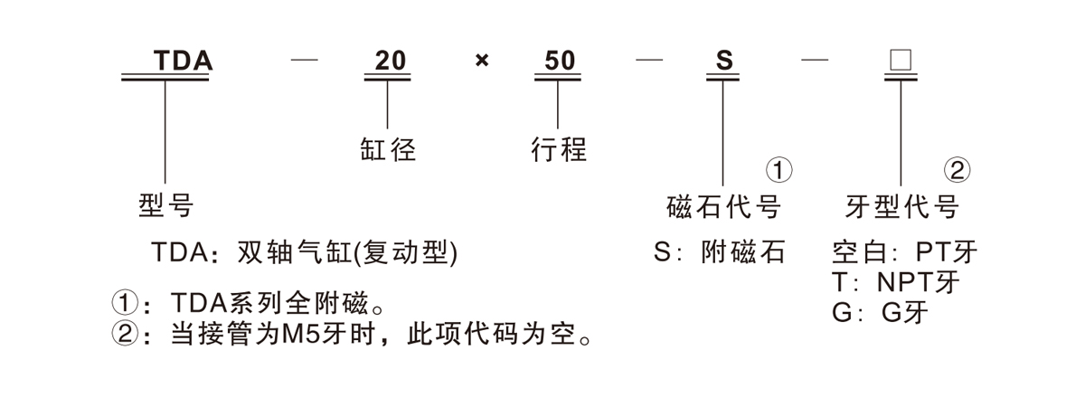 5. 本系列气缸标准配置为附磁型,无不附磁可选。