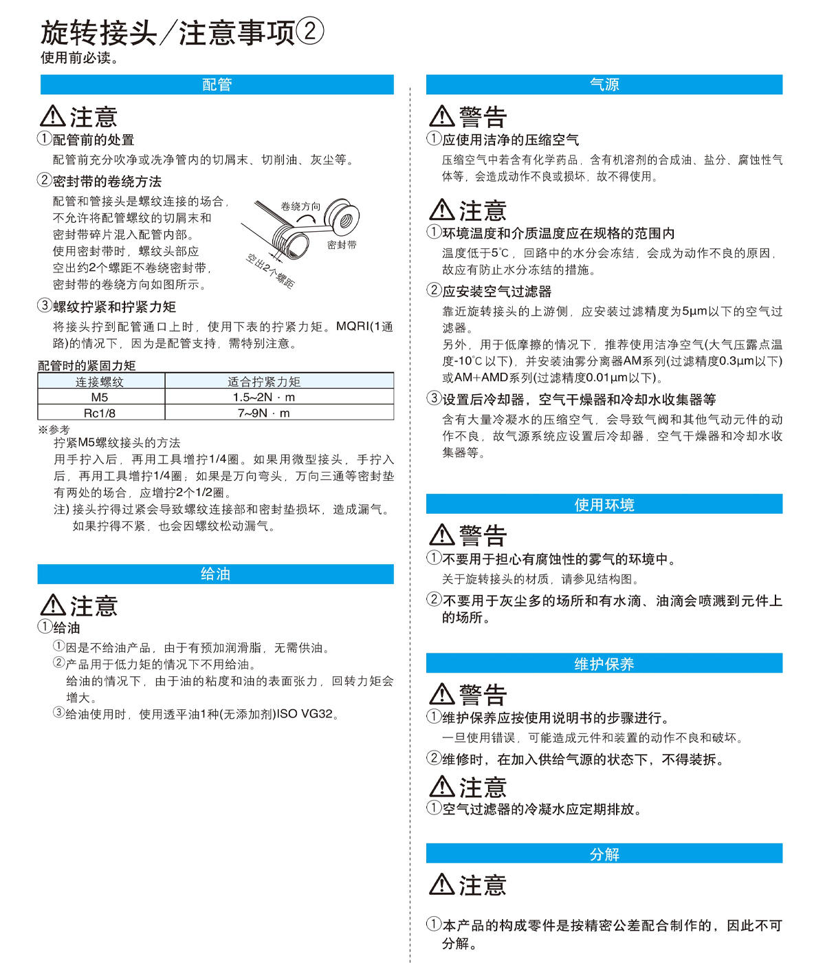金属密封方式。回转机构・用于向机器人手臂等回转、摆动部位供气。