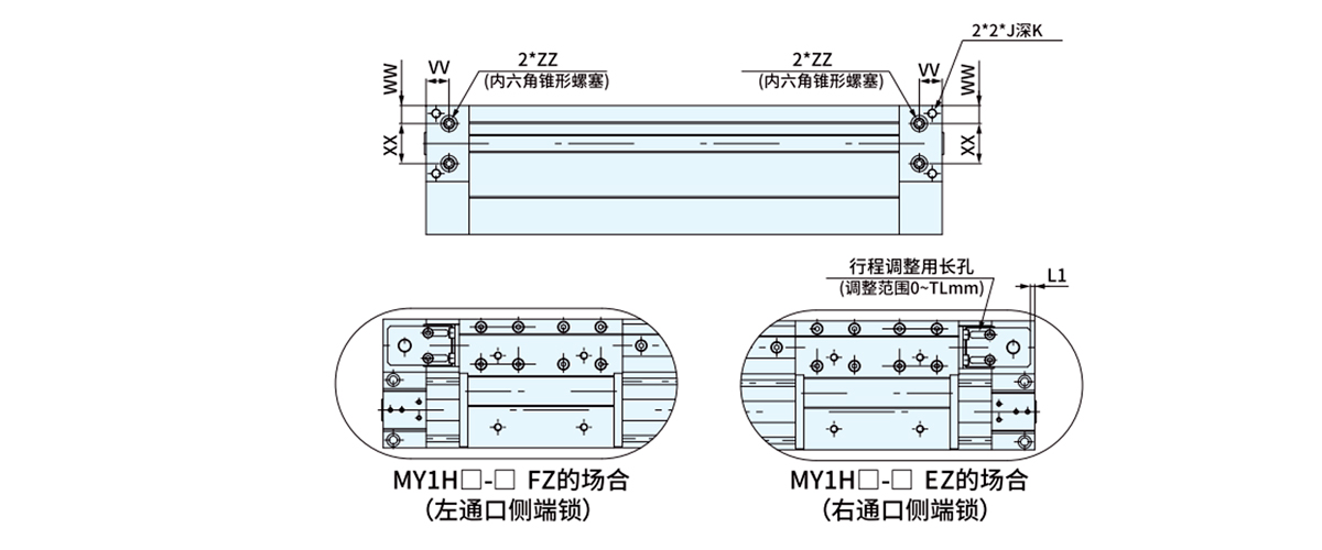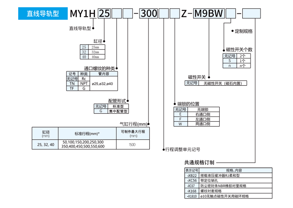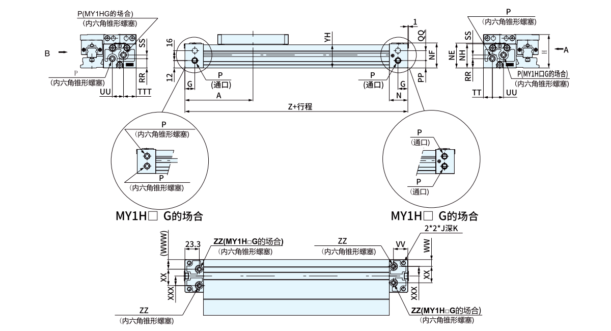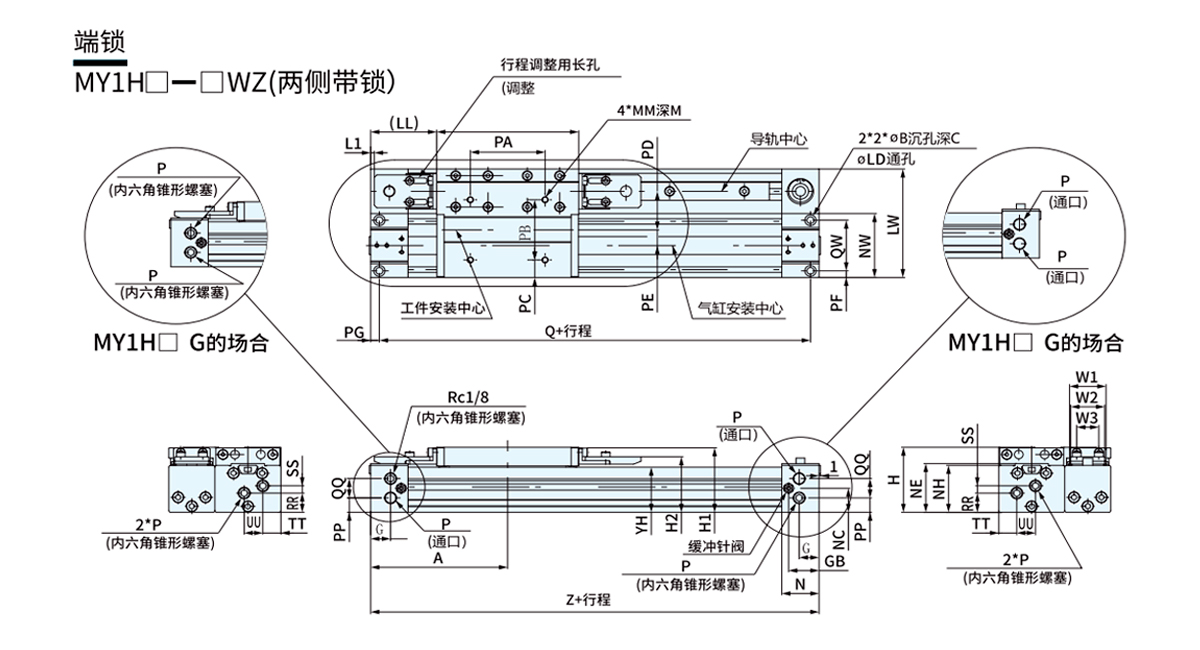 MY1H系列机械接合式无杆气缸(直线导轨型)