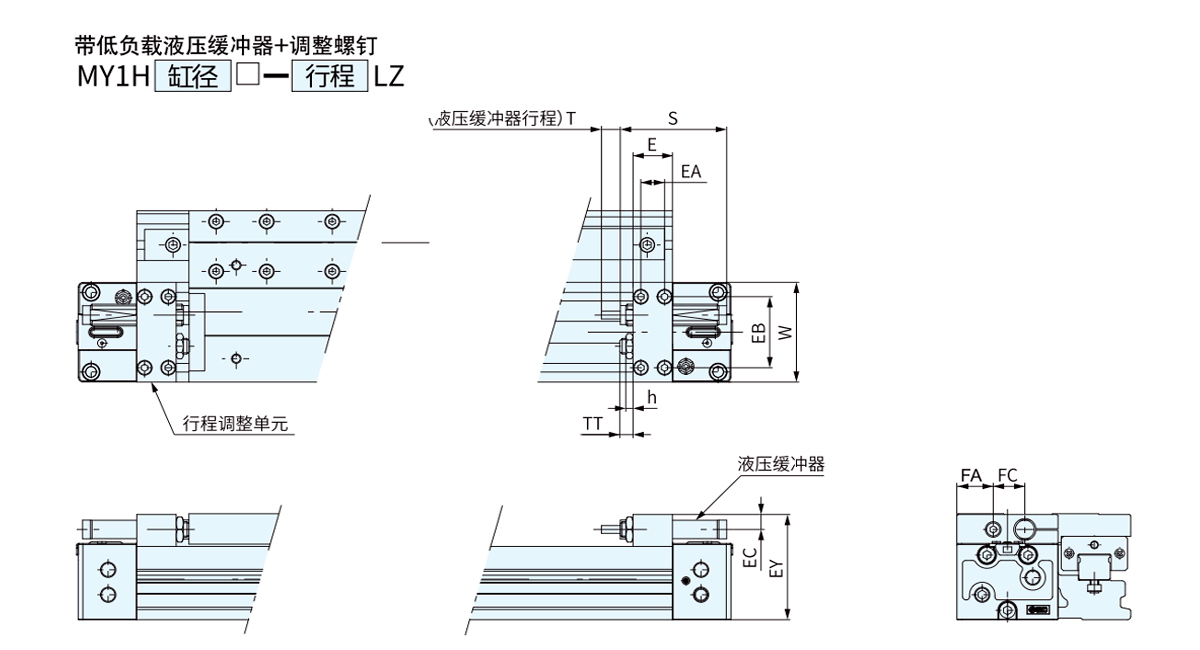 ● 空间效率优势:由于省去了活塞杆伸缩所需的前后空间,配合其集成式的导轨设计,整体结构非常紧凑,特别有利于在空间受限的设备布局中节省宝贵的轴向安装空间。