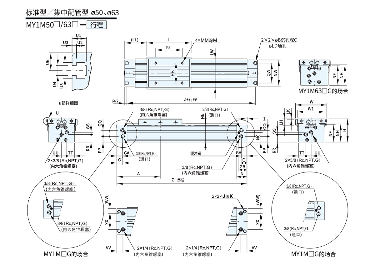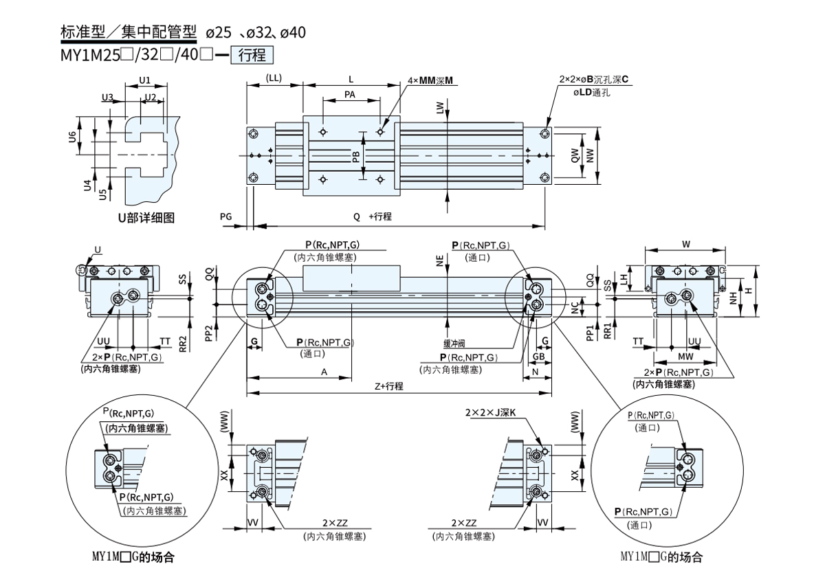 MY1M系列机械接合式无杆气缸滑动轴承导轨型
