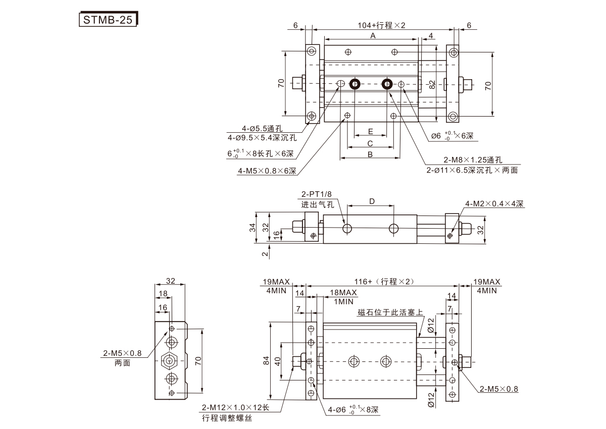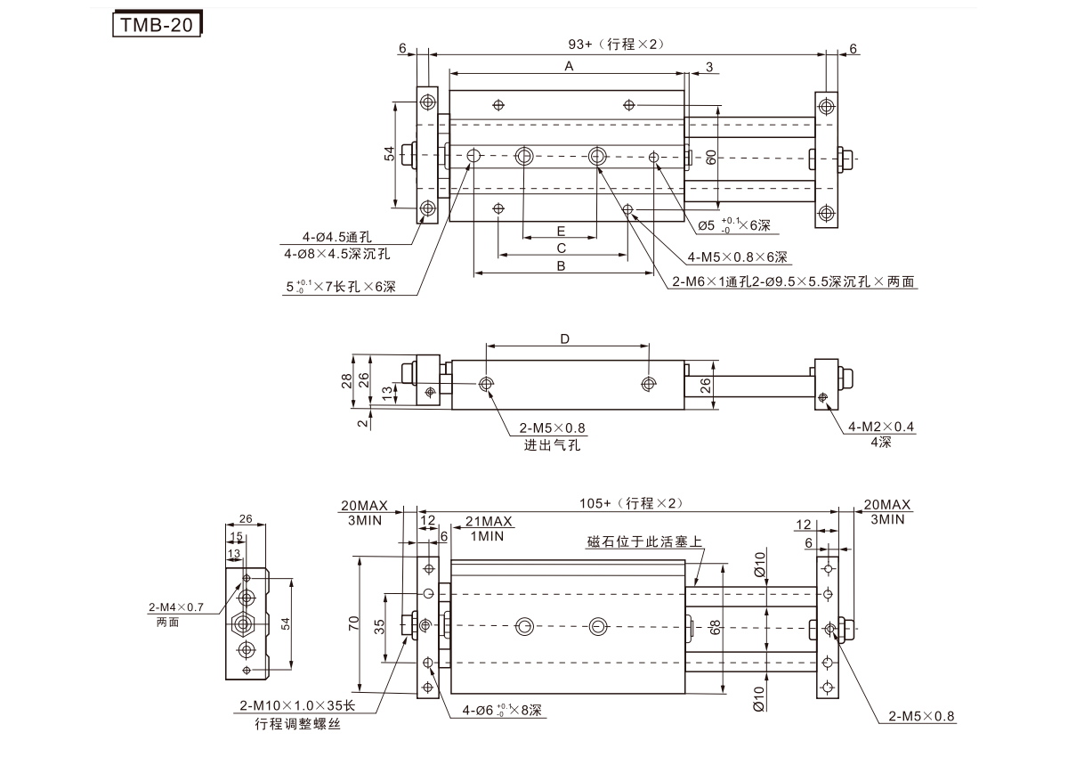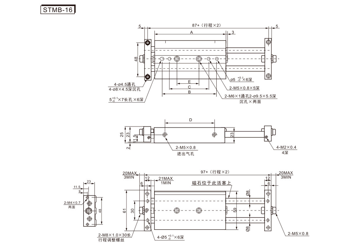 2. 双活塞杆结构,使气缸具有较好的抗弯曲及抗扭转性能,可承受较大的运动负载或侧向负载;