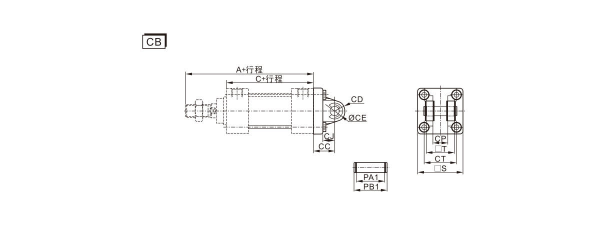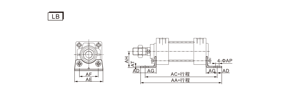 3. 与ISO15552标准气缸相比,同缸径MBB系列气缸长度小;