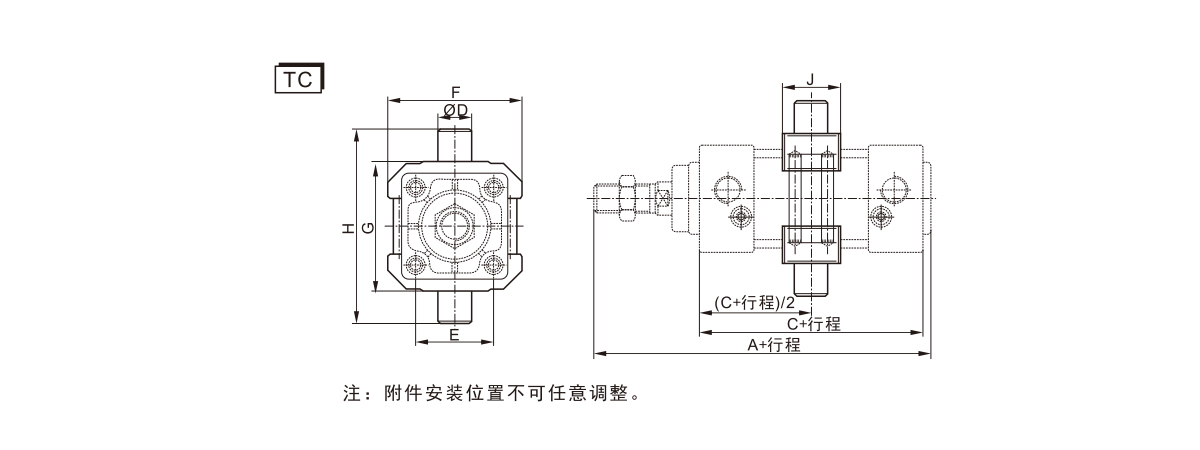 2. 为拉杆式气缸,前后盖与铝管缸体用支柱连接,可靠性好;