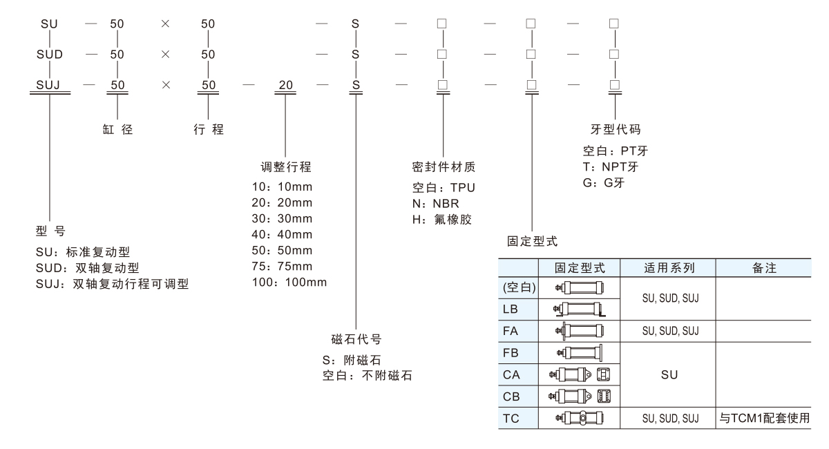3. 与ISO15552标准气缸相比,同缸径SU系列气缸长度小;