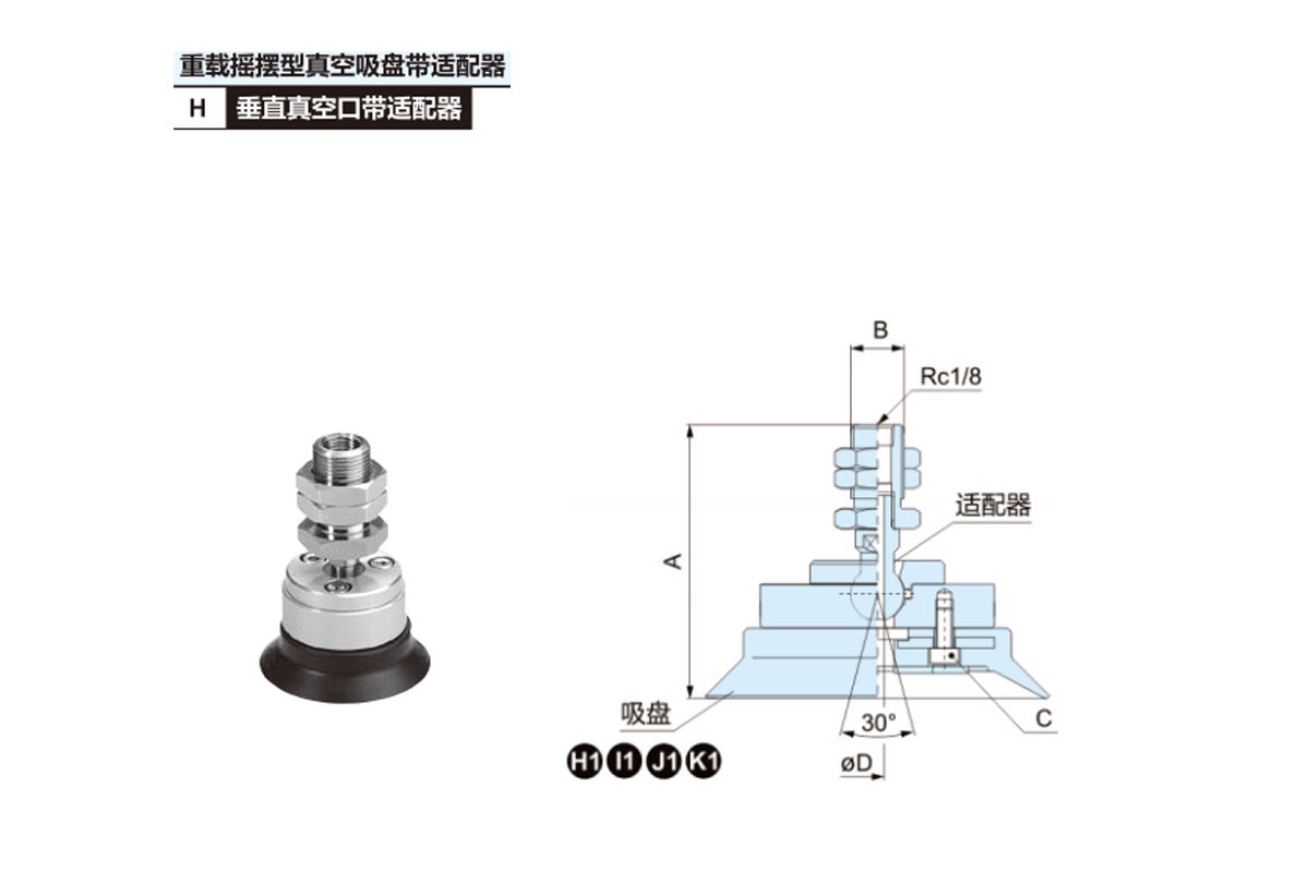 ZP2系列重载摇摆型真空吸盘(Ø32~Ø125)