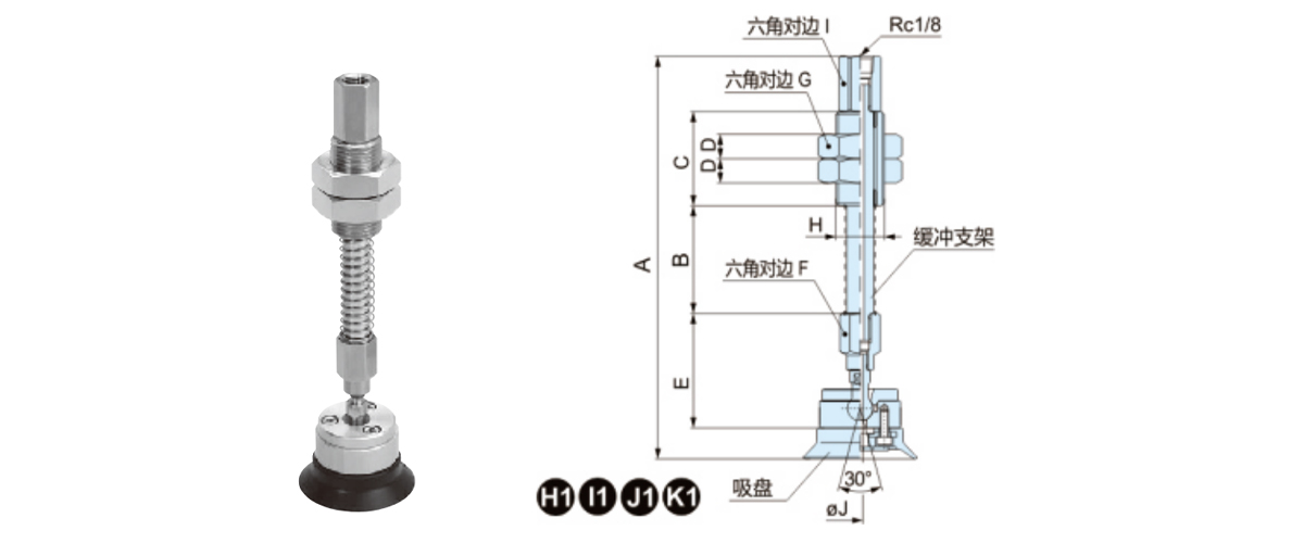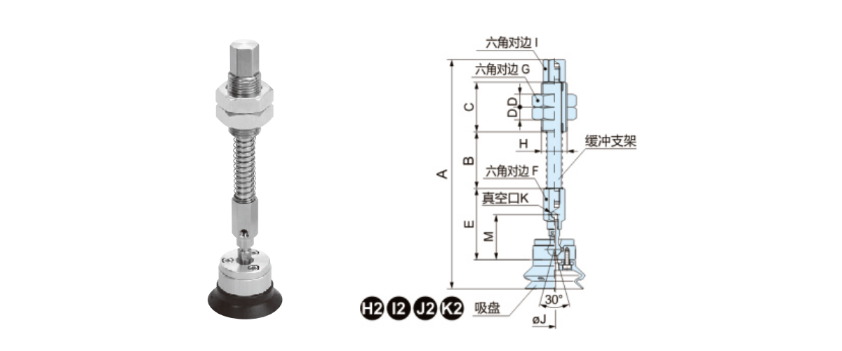 ZP2系列重载摇摆型真空吸盘(Ø32~Ø125)专为工业场景中大负荷、大倾角工况设计,通过悬浮式补偿机构实现工件表面自适应贴合,适用于金属板材、工程构件等刚性物料的移载与定位。