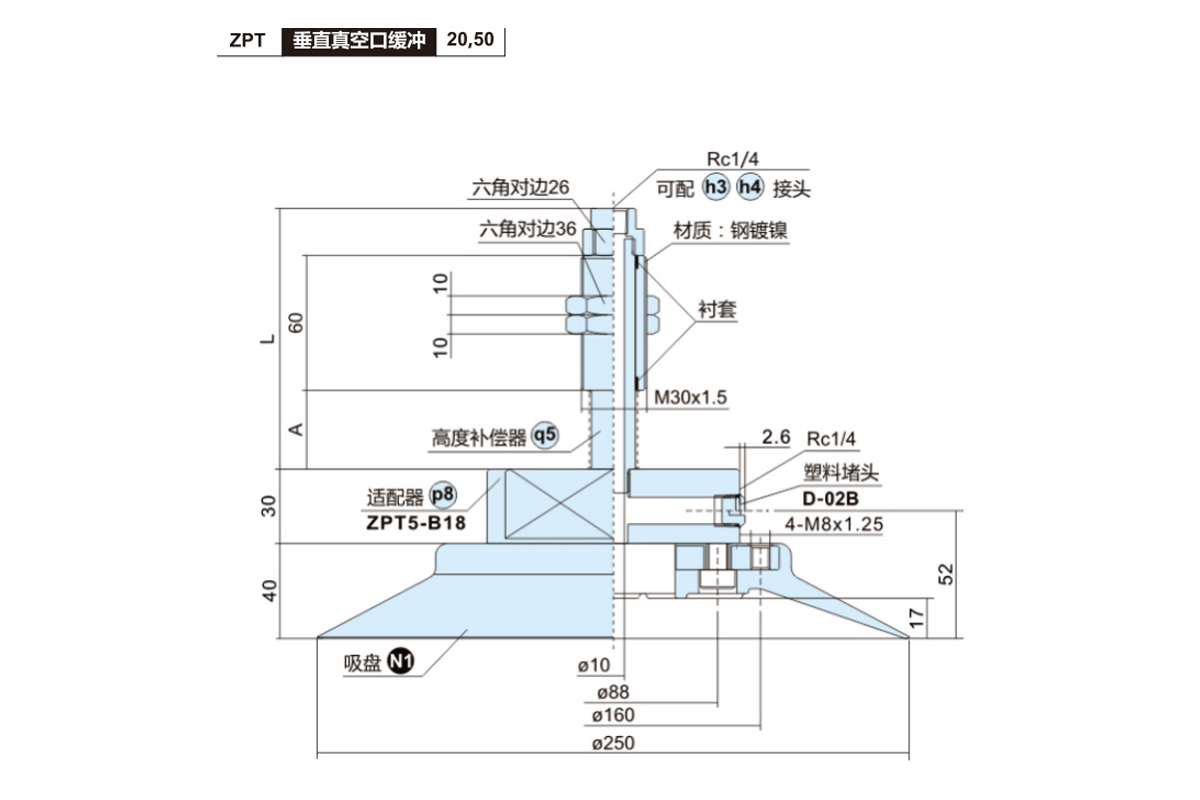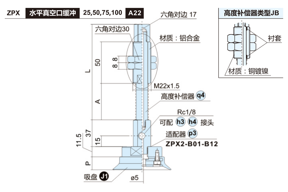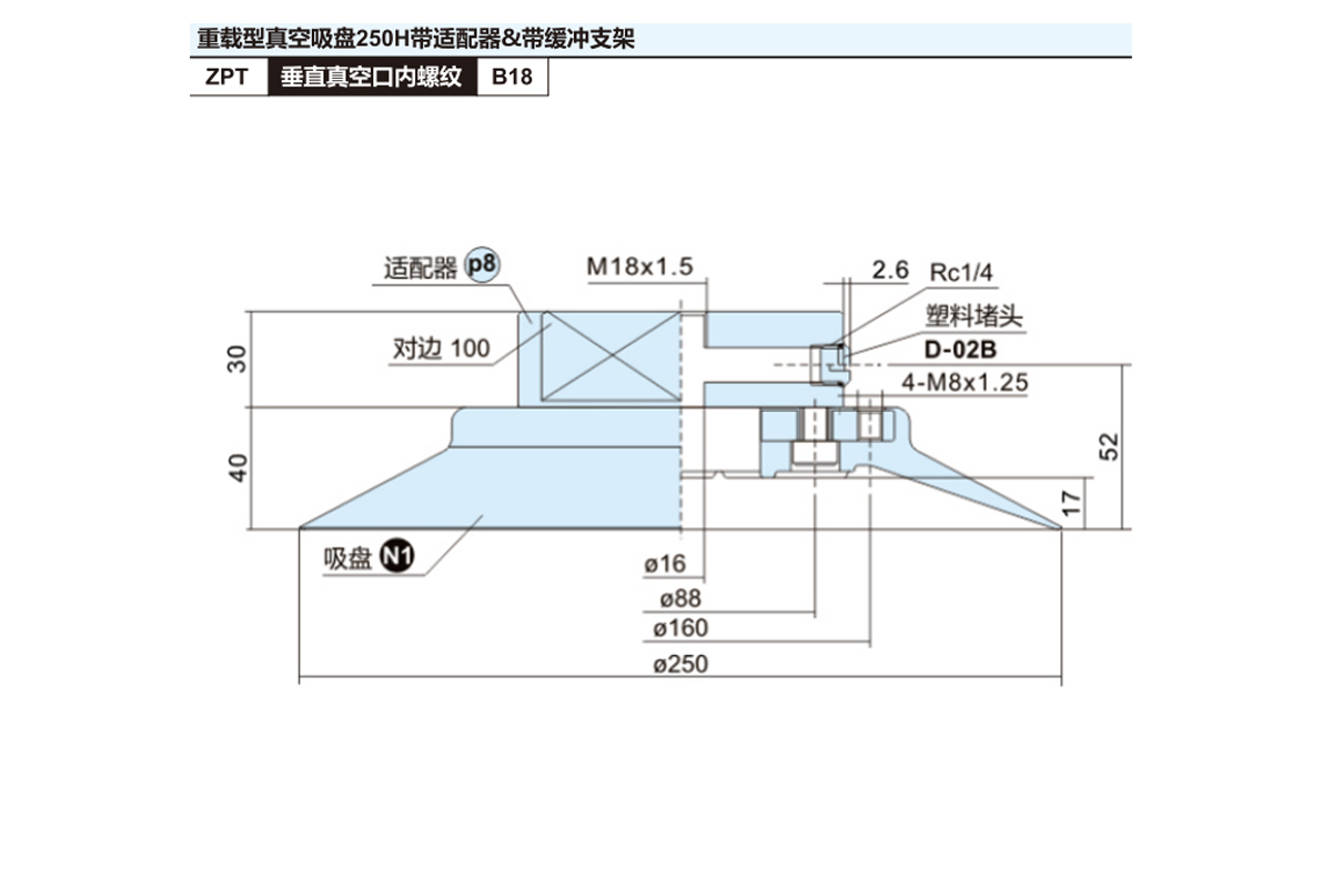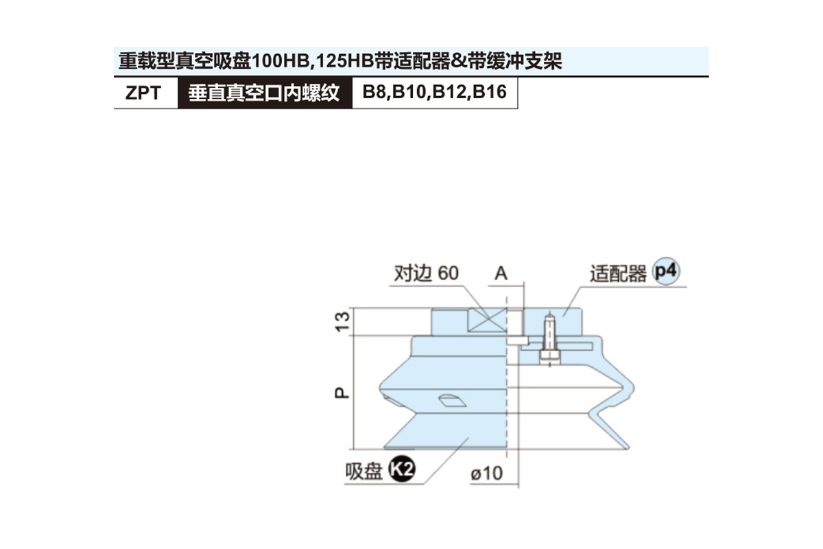 ZP系列重载型真空吸盘带适配器及缓冲支架(Ø32~Ø340)代表了专为应对严苛工业抓取需求而设计的一体化真空处理解决方案。它将核心的重载吸盘、关键接口适配器与必需的缓冲支架整合于一体,覆盖广泛的尺寸范围,旨在为搬运重型、不规则或要求平稳操作的工件提供可靠、适应性强的真空抓取基础单元。