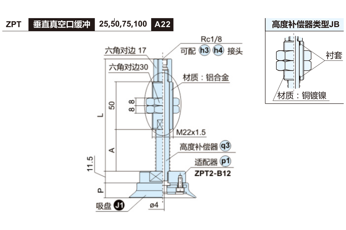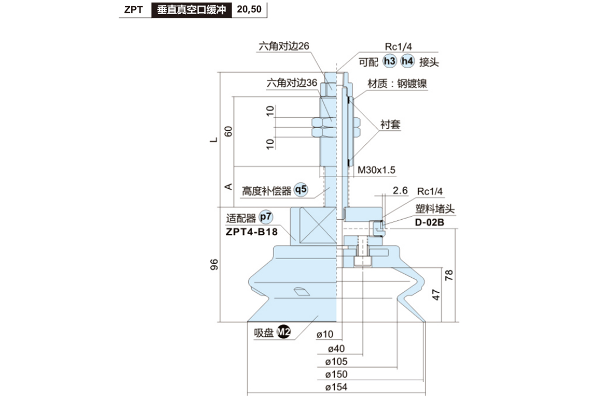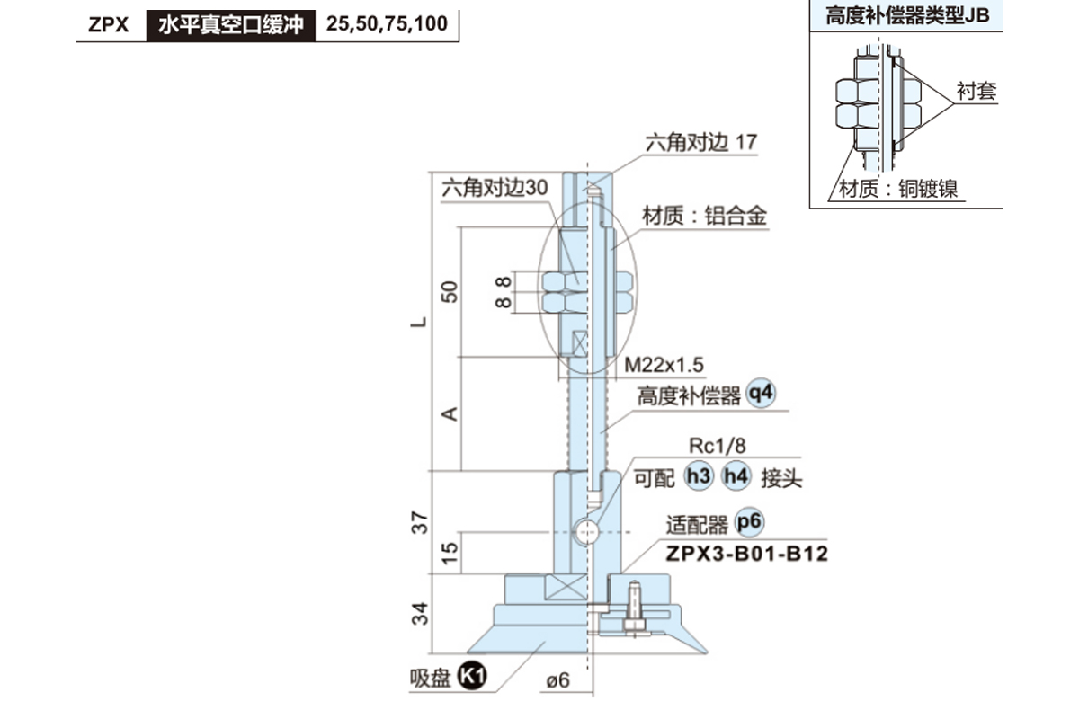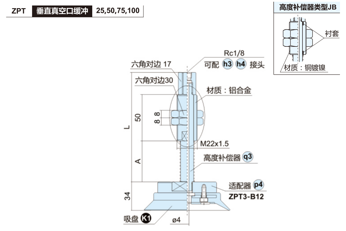 ZP系列重载型真空吸盘带适配器及缓冲支架(Ø32~Ø340)代表了专为应对严苛工业抓取需求而设计的一体化真空处理解决方案。它将核心的重载吸盘、关键接口适配器与必需的缓冲支架整合于一体,覆盖广泛的尺寸范围,旨在为搬运重型、不规则或要求平稳操作的工件提供可靠、适应性强的真空抓取基础单元。