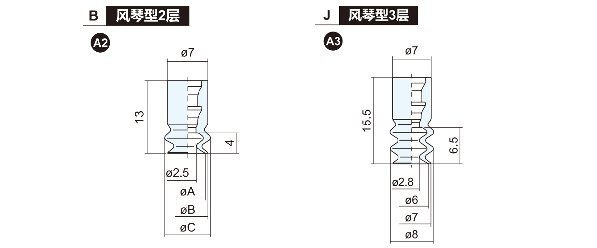3.尺寸覆盖:直径规格涵盖02、04、06、08、10、13、16mm等,满足从微型元件到中小型物料的吸附需求。
