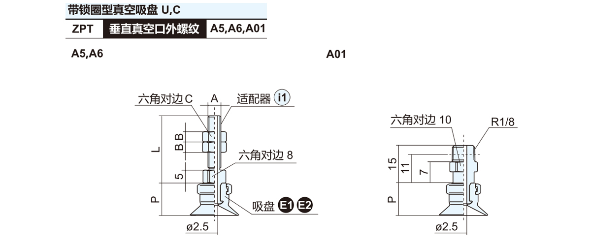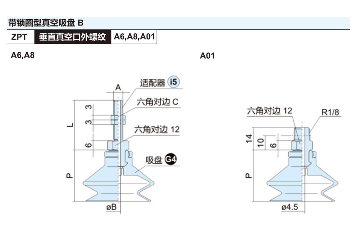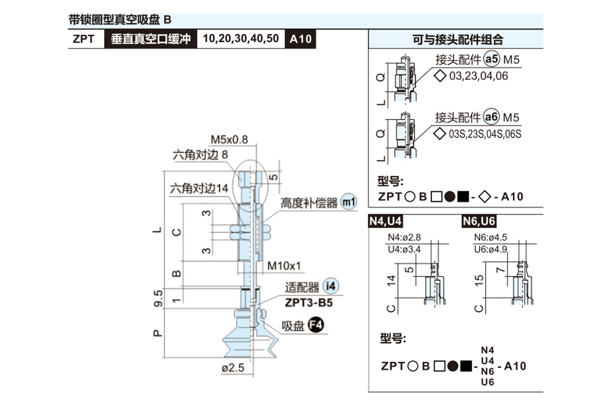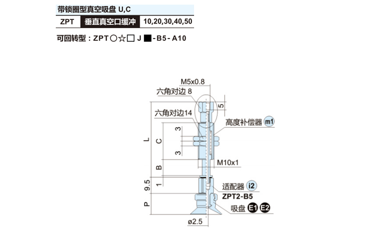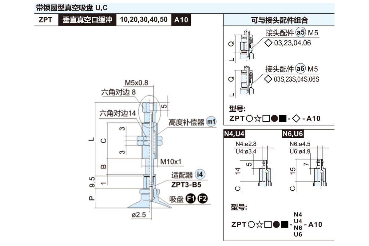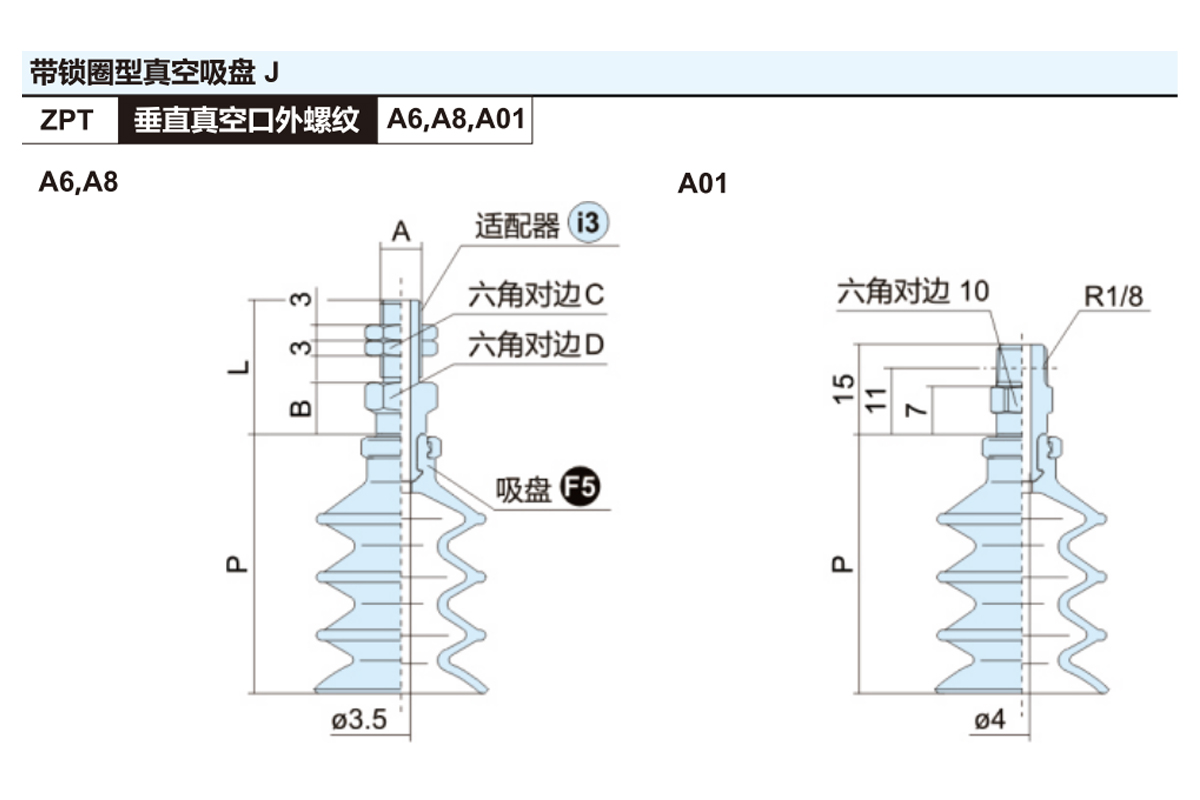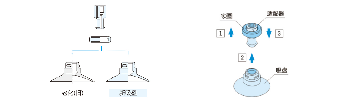 ZP系列带锁圈真空吸盘、带适配器&缓冲支架