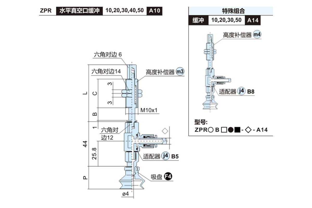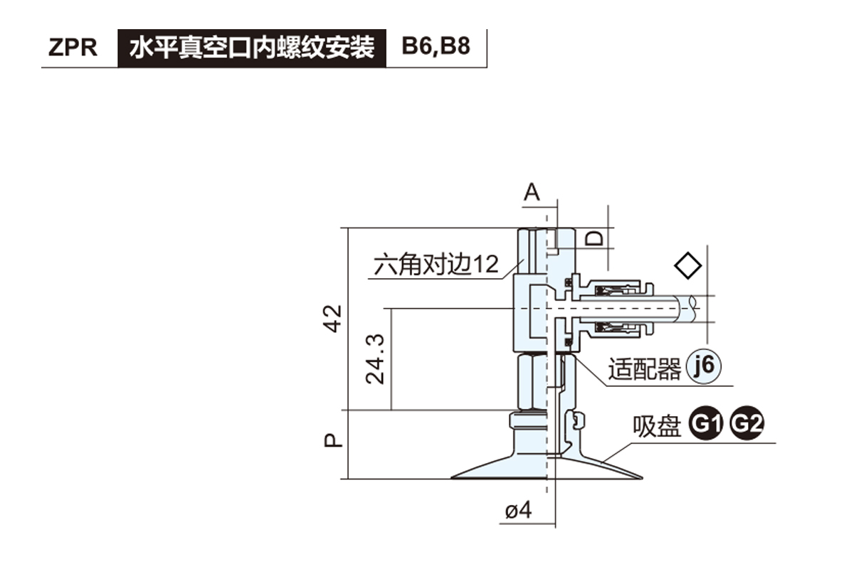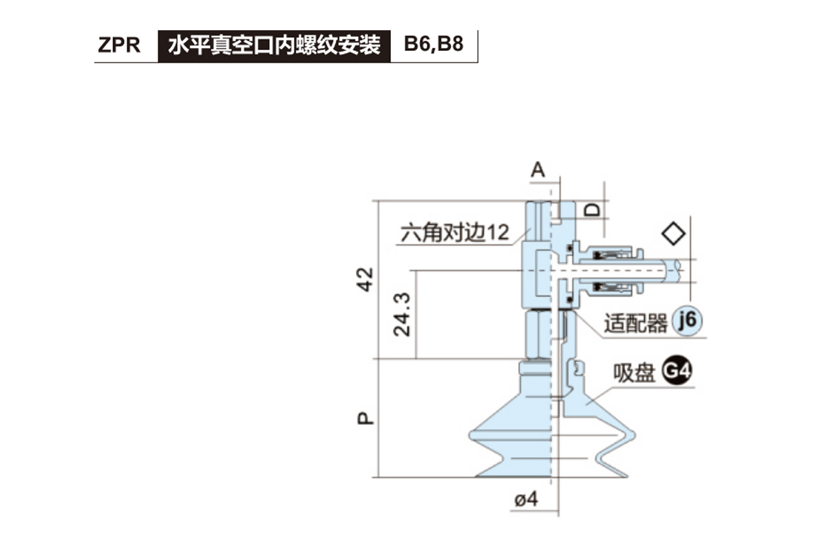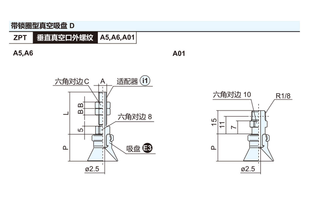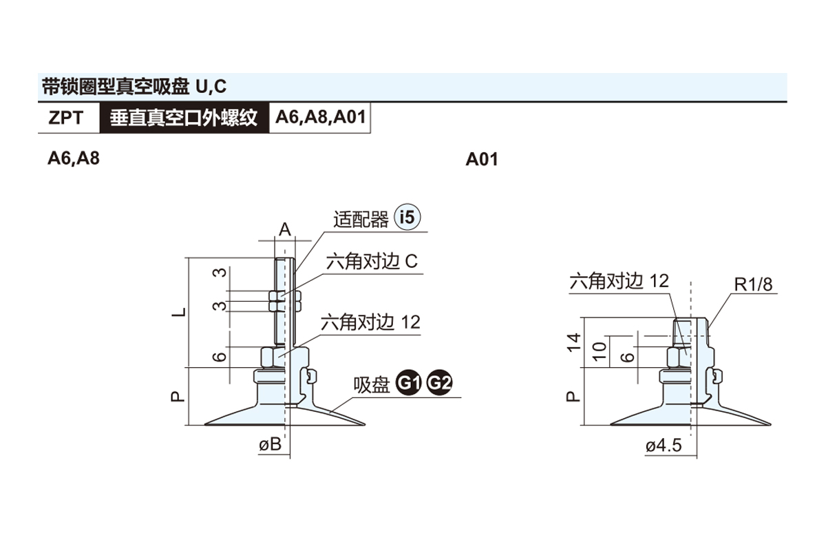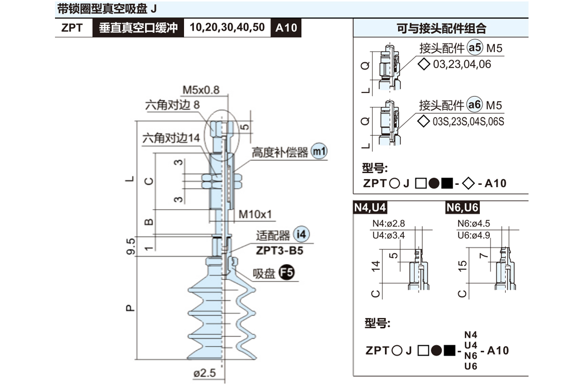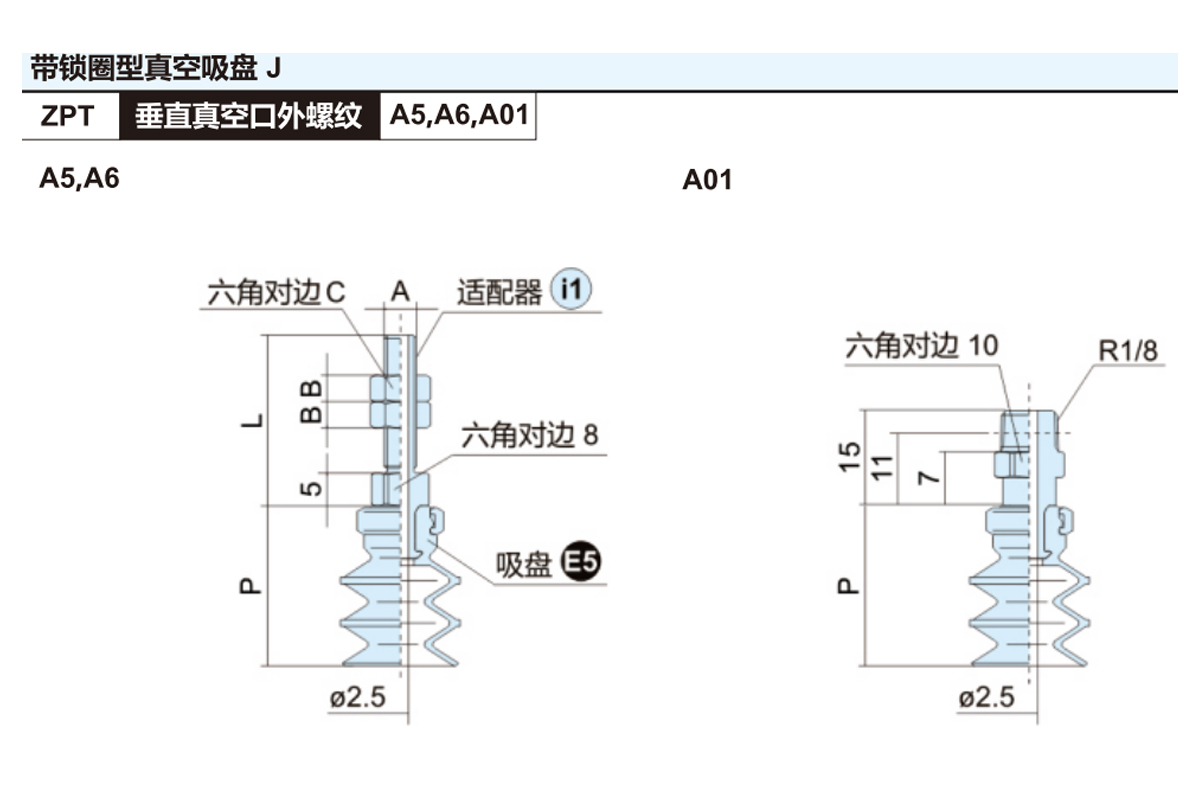 ZP系列带锁圈真空吸盘、带适配器&缓冲支架
