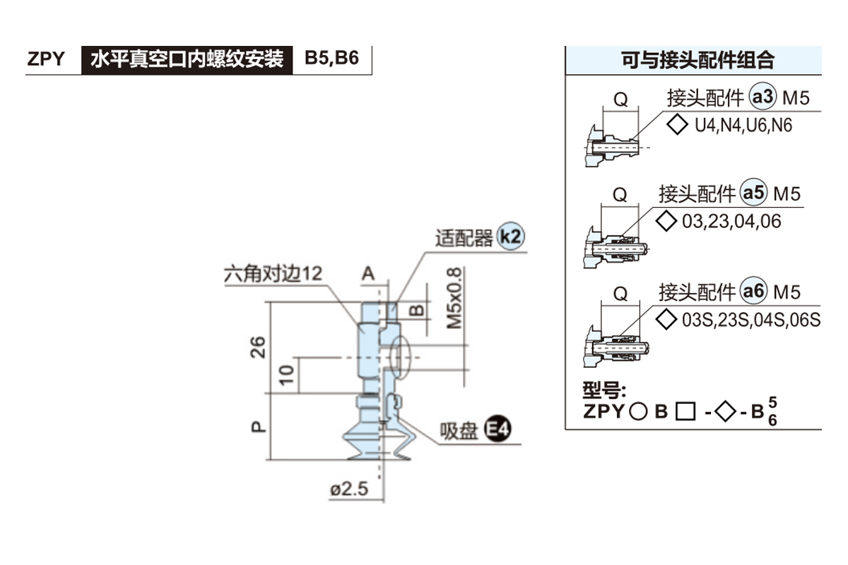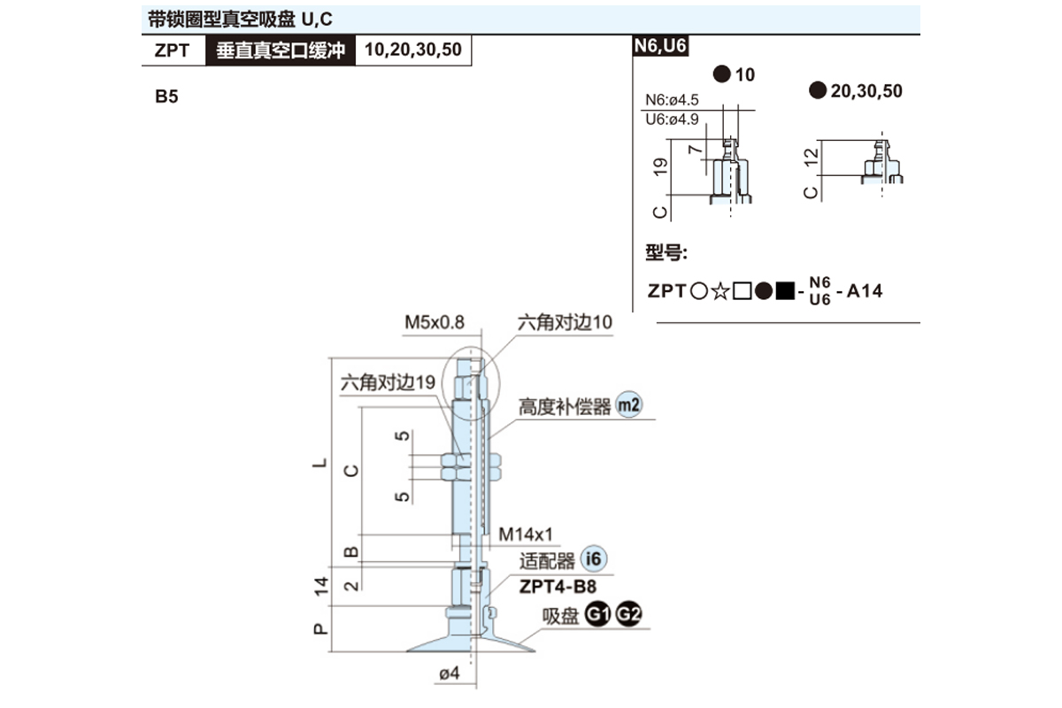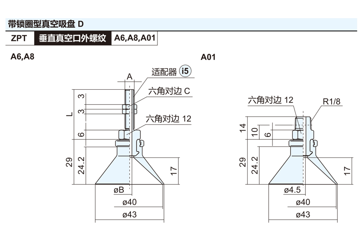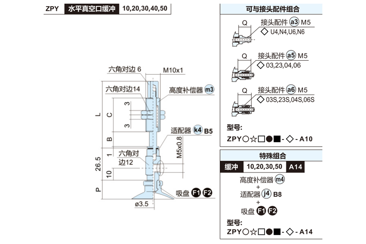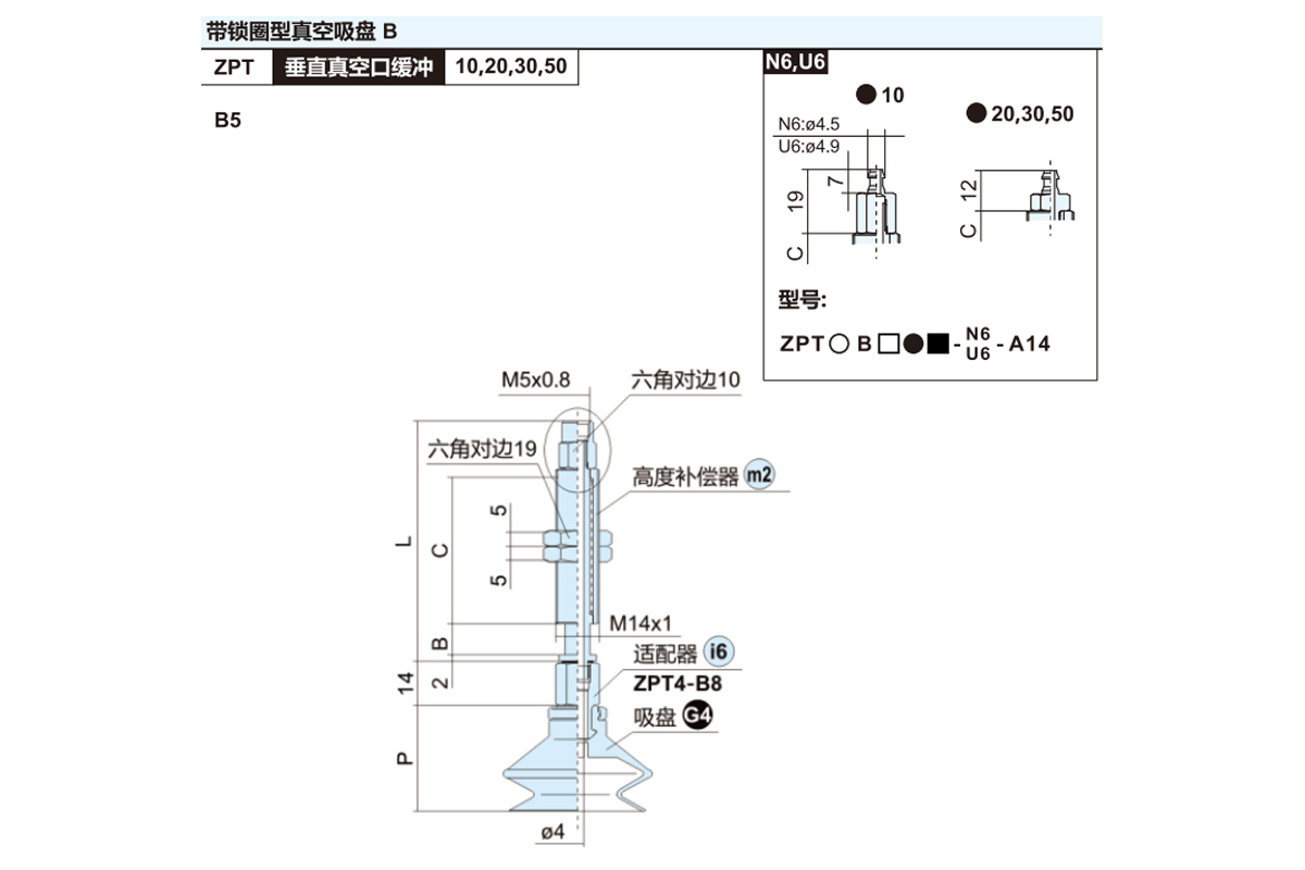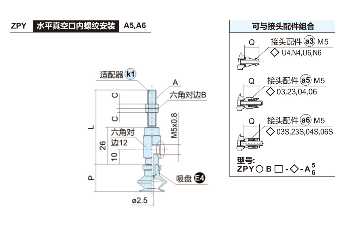 ZP系列带锁圈真空吸盘、带适配器&缓冲支架