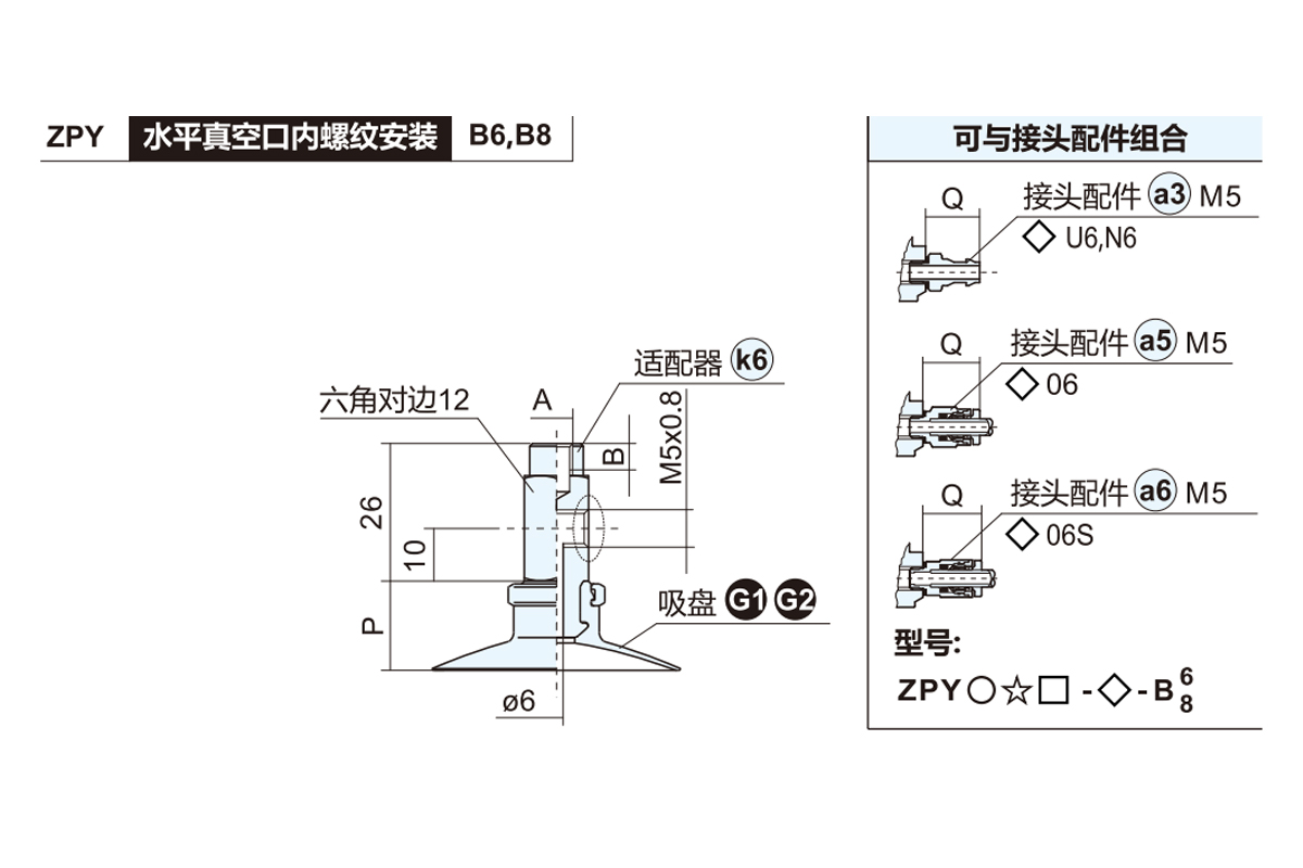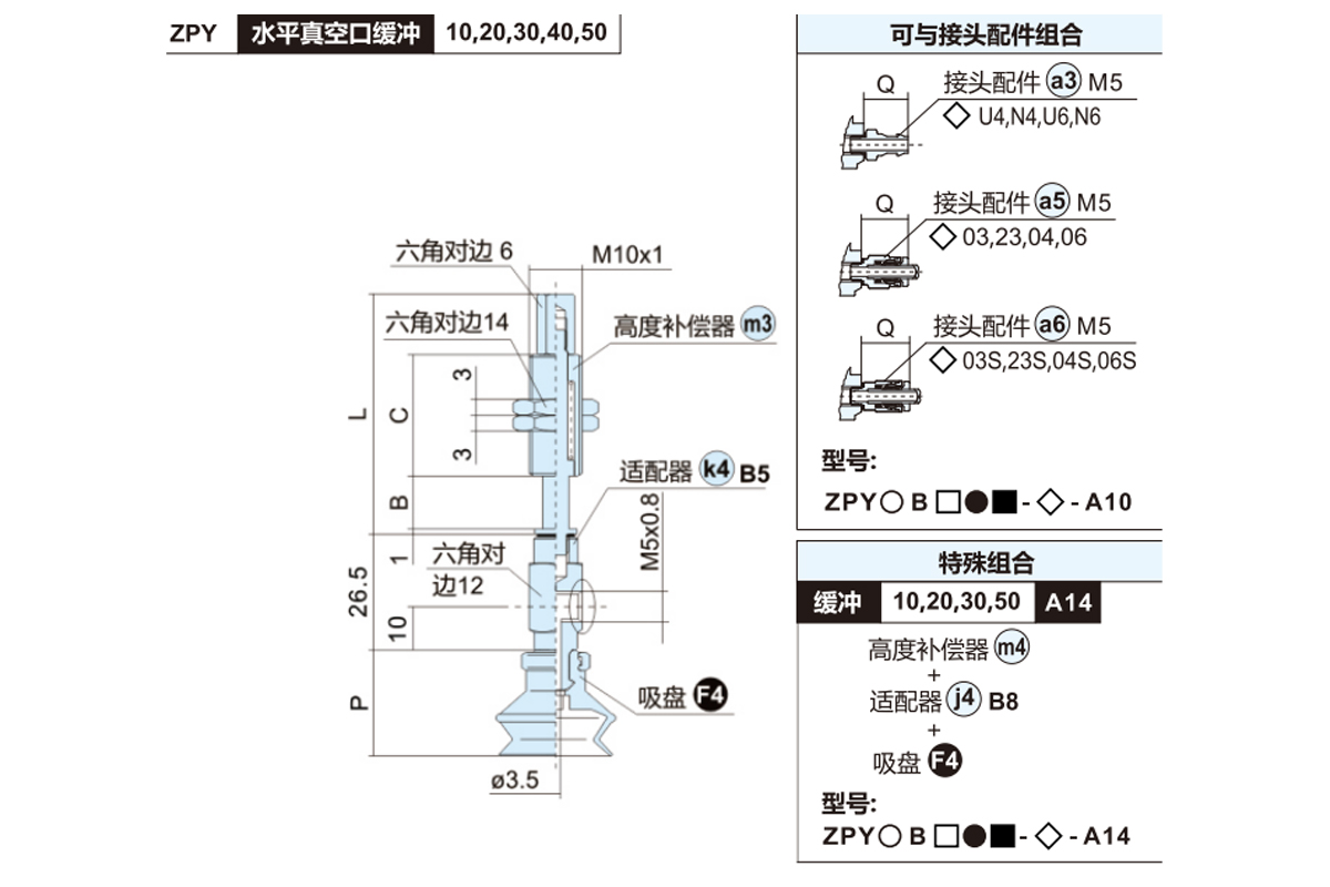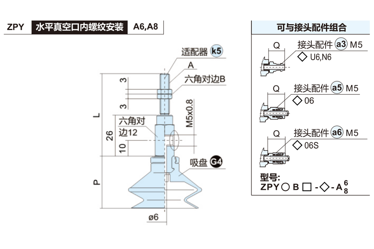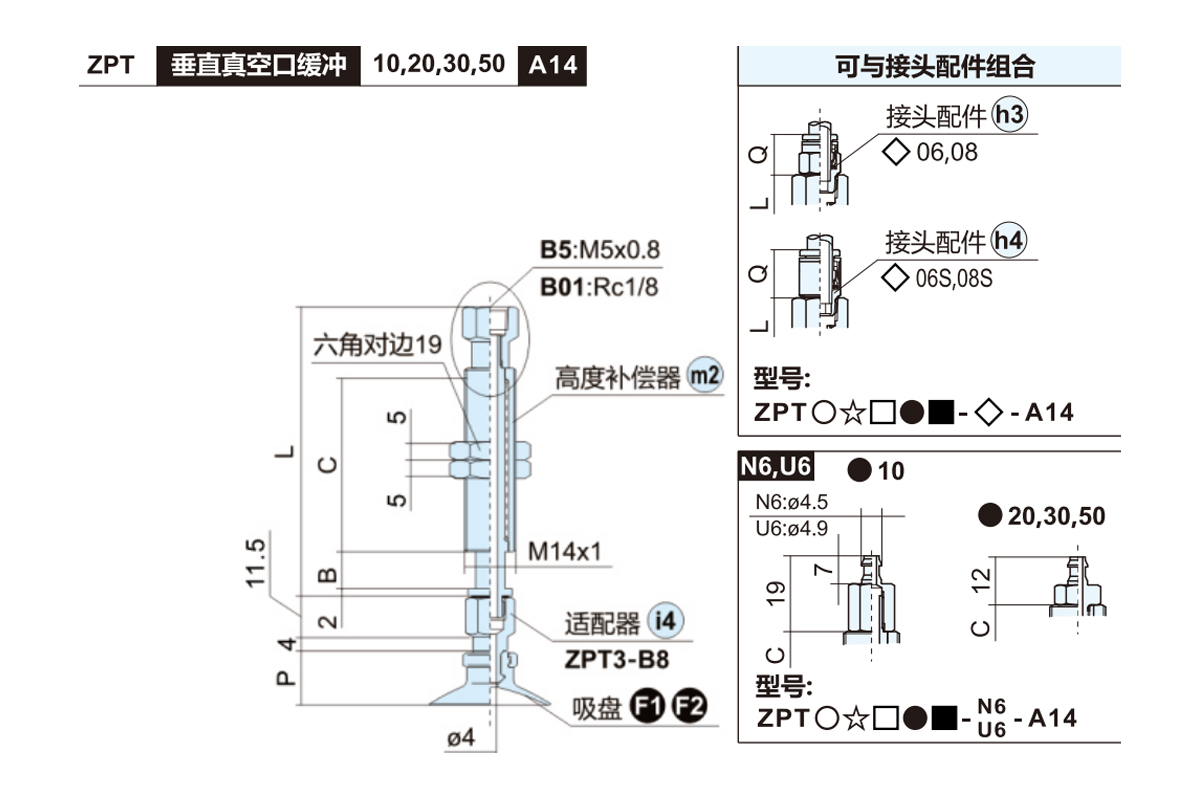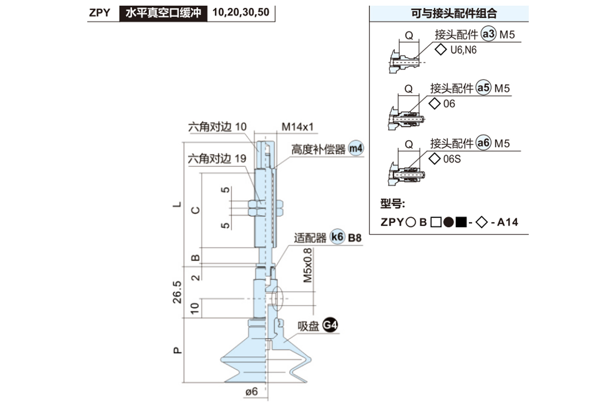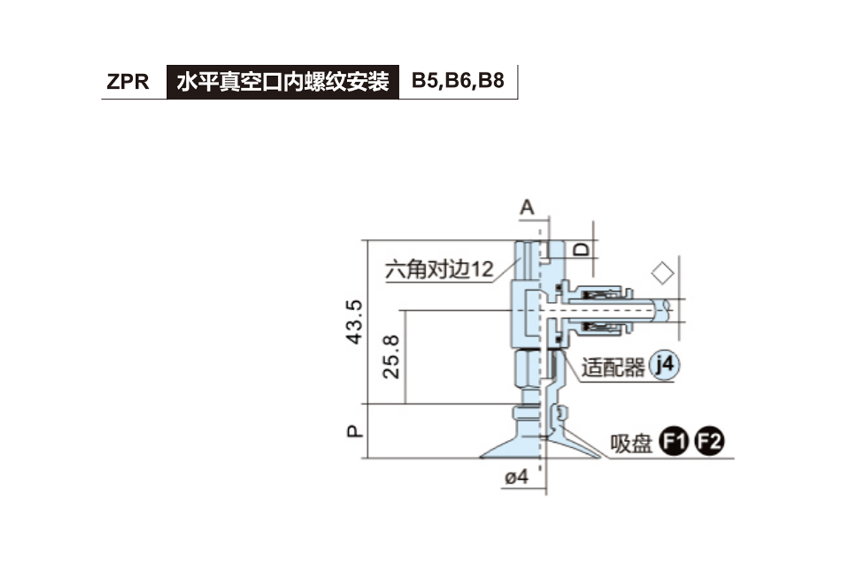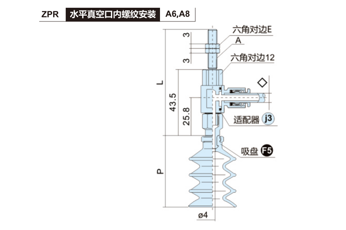 ZP系列带锁圈真空吸盘、带适配器&缓冲支架