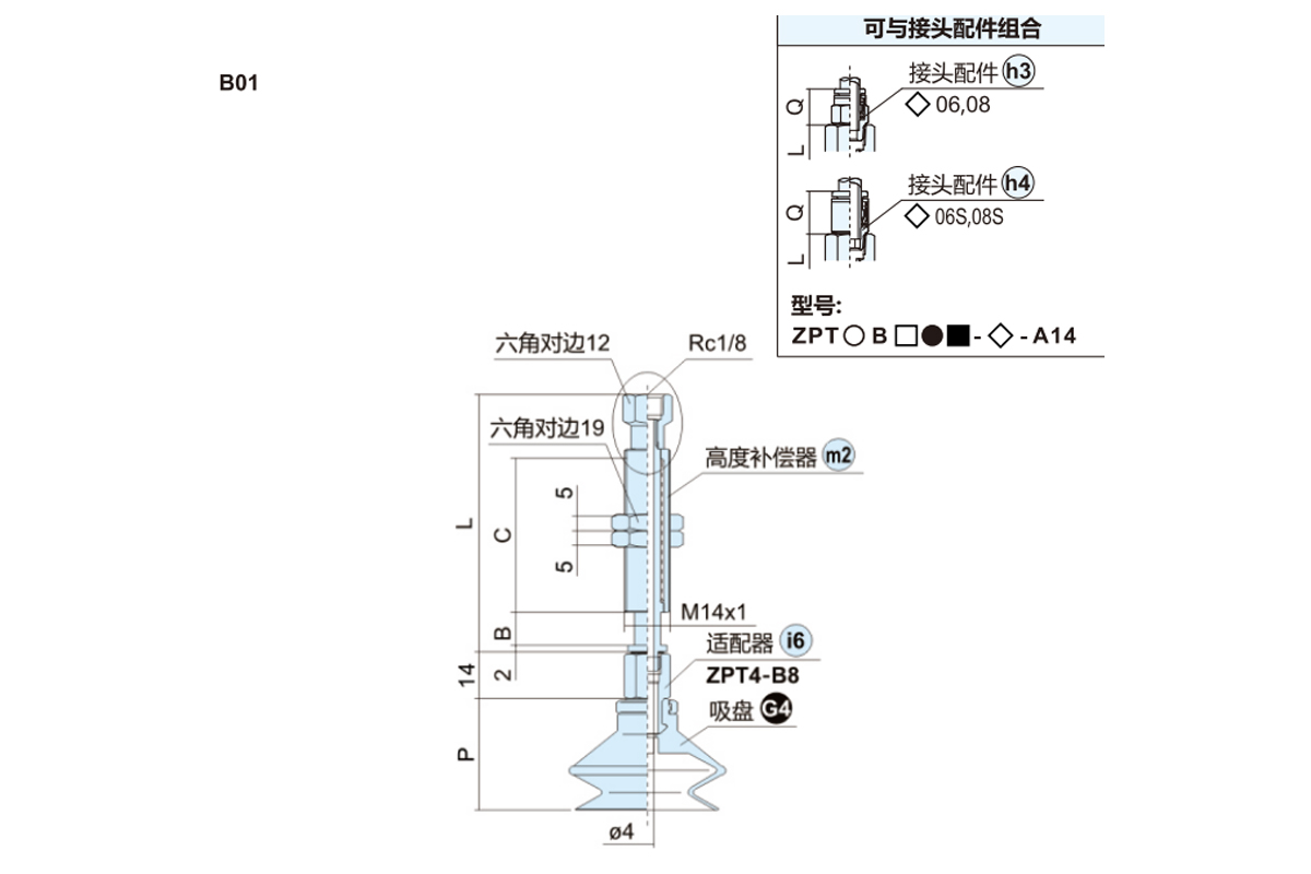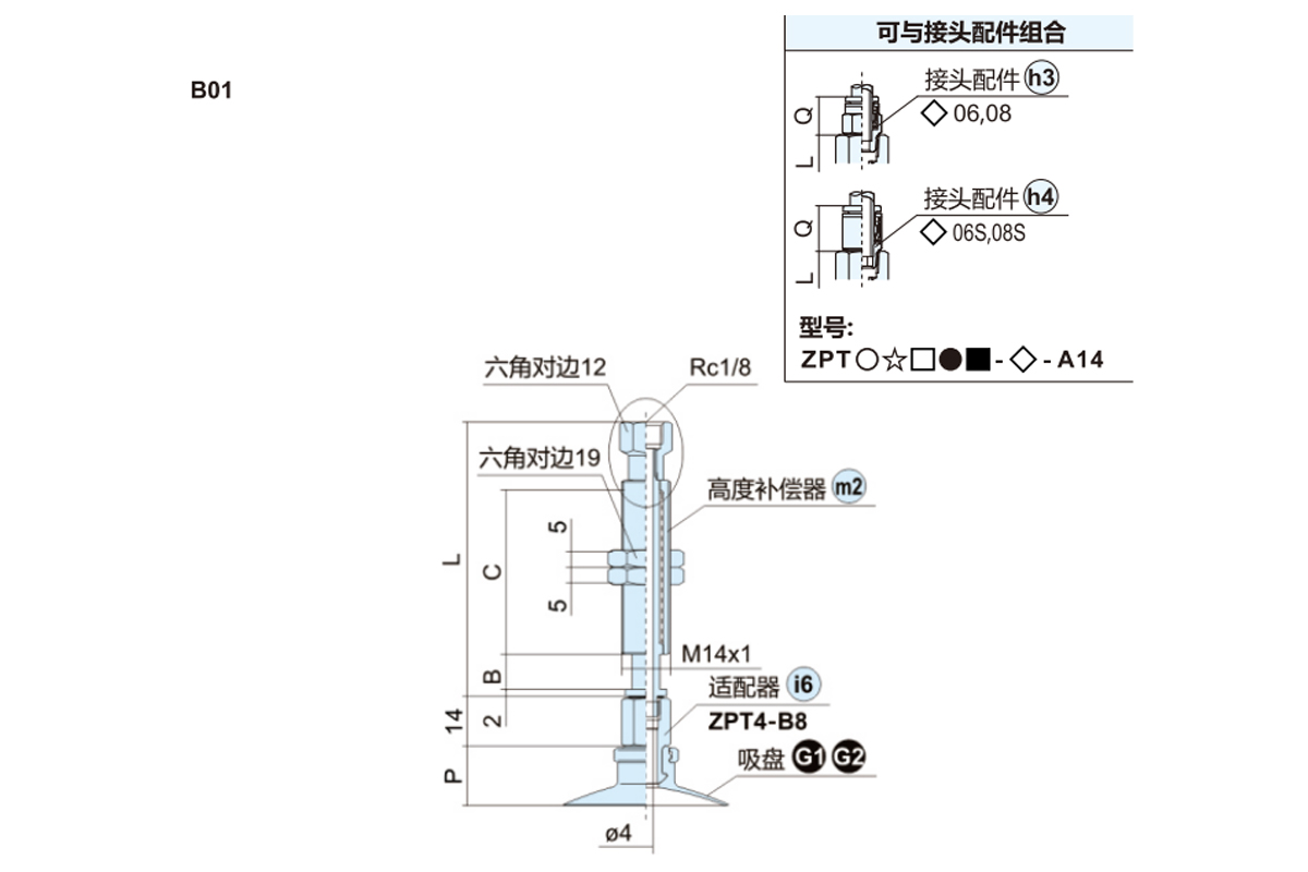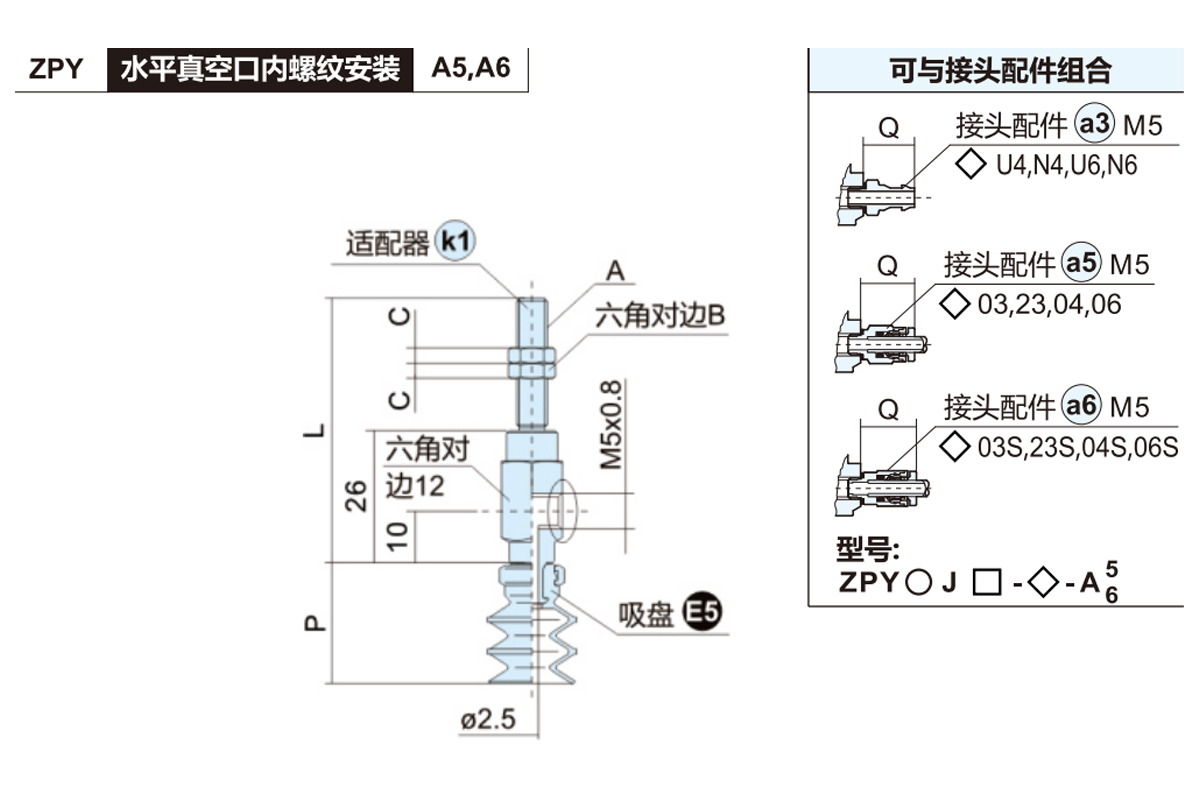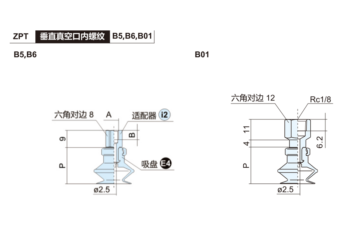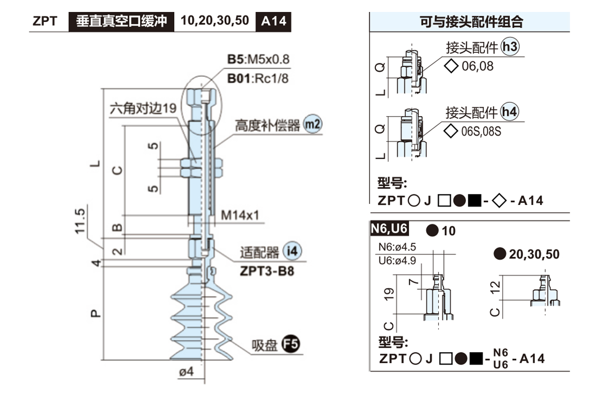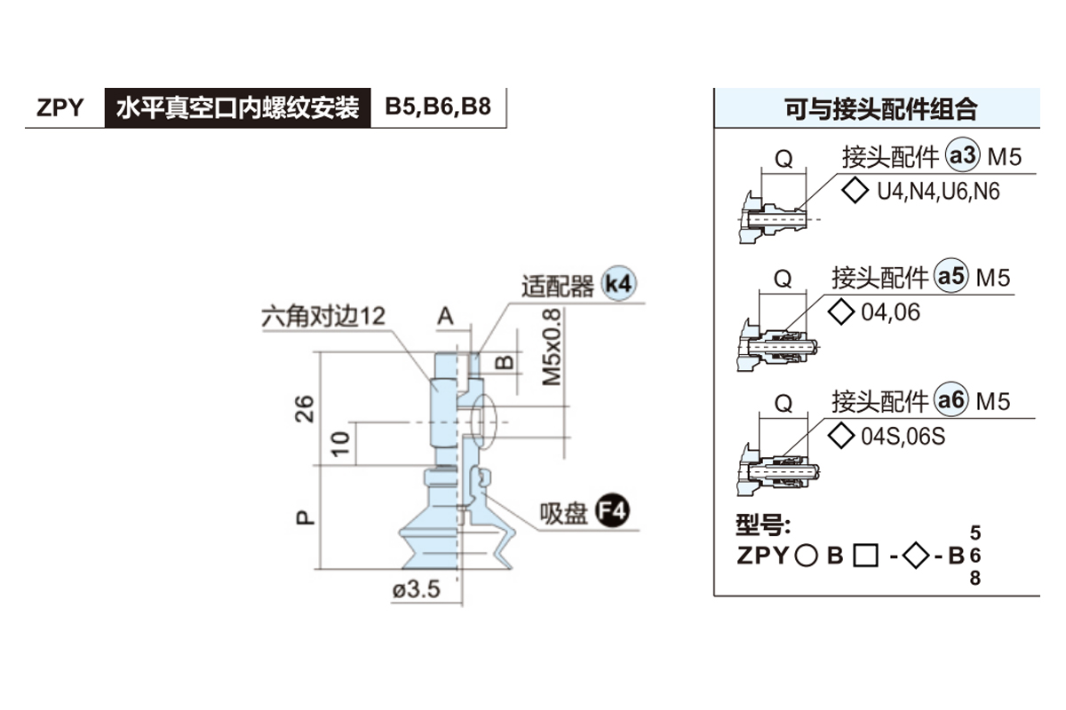ZP系列带锁圈真空吸盘、带适配器&缓冲支架