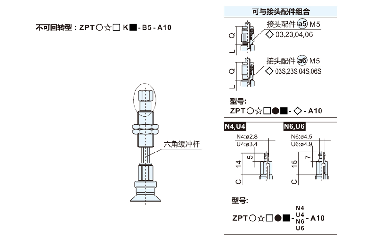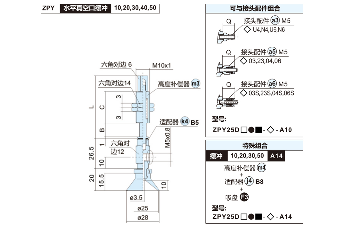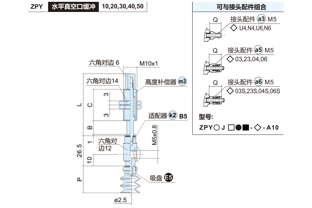 ZP系列带锁圈真空吸盘带适配器&缓冲支架(Ø9~Ø50)