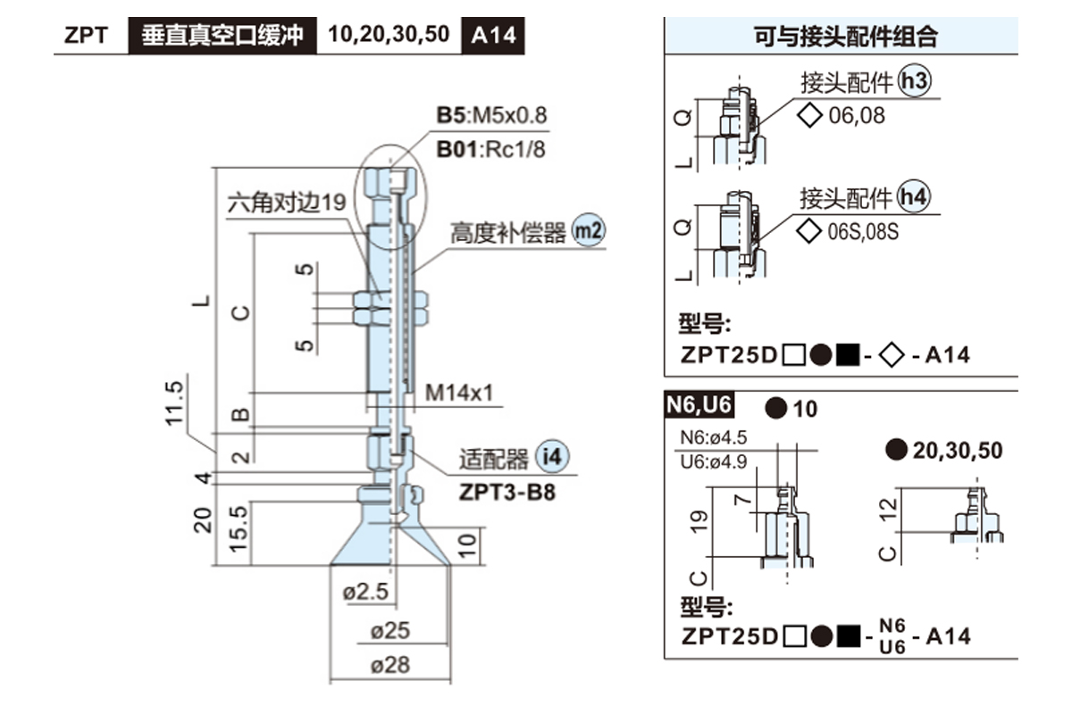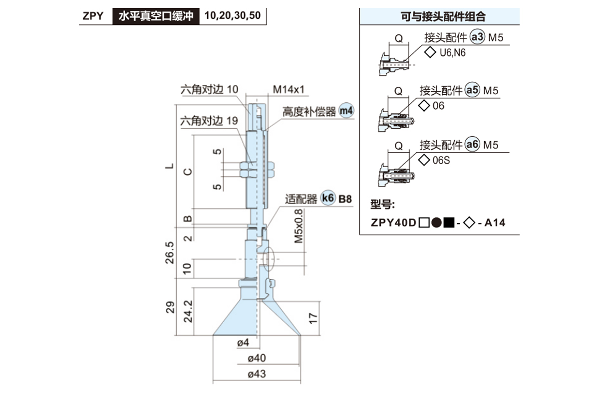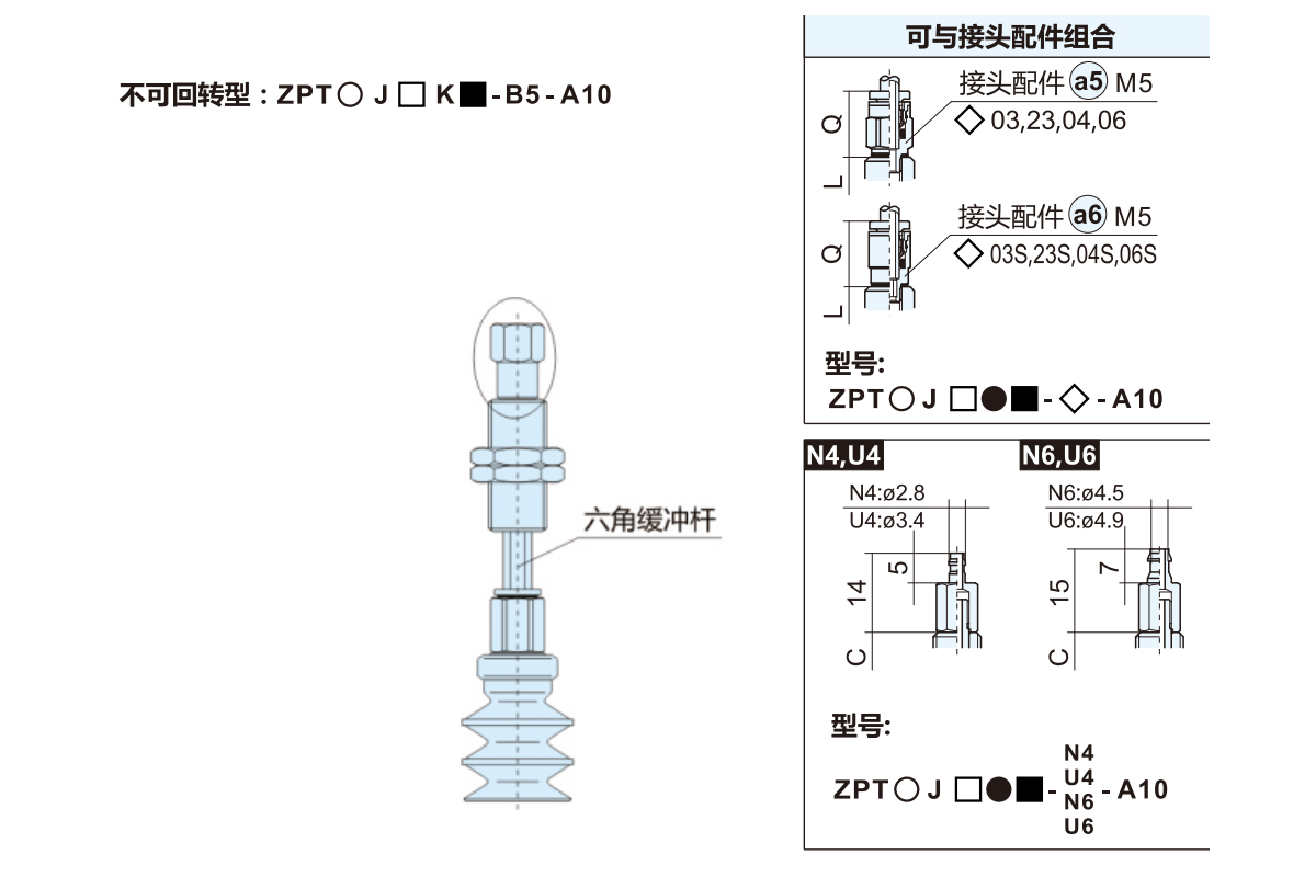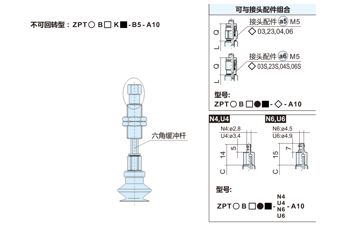 ZP系列带锁圈真空吸盘带适配器&缓冲支架(Ø9~Ø50)
