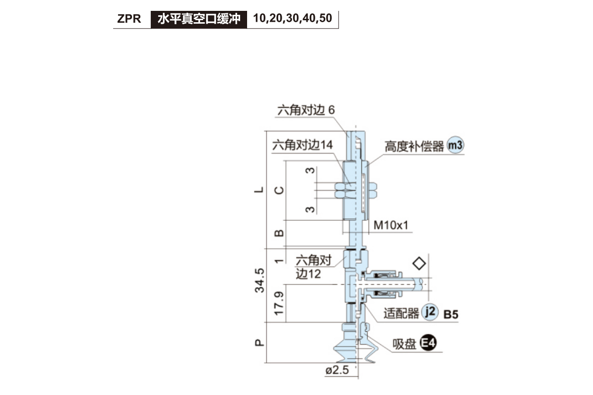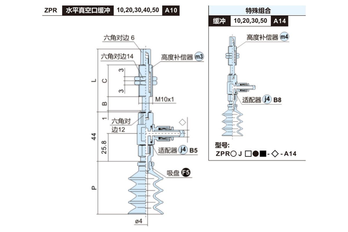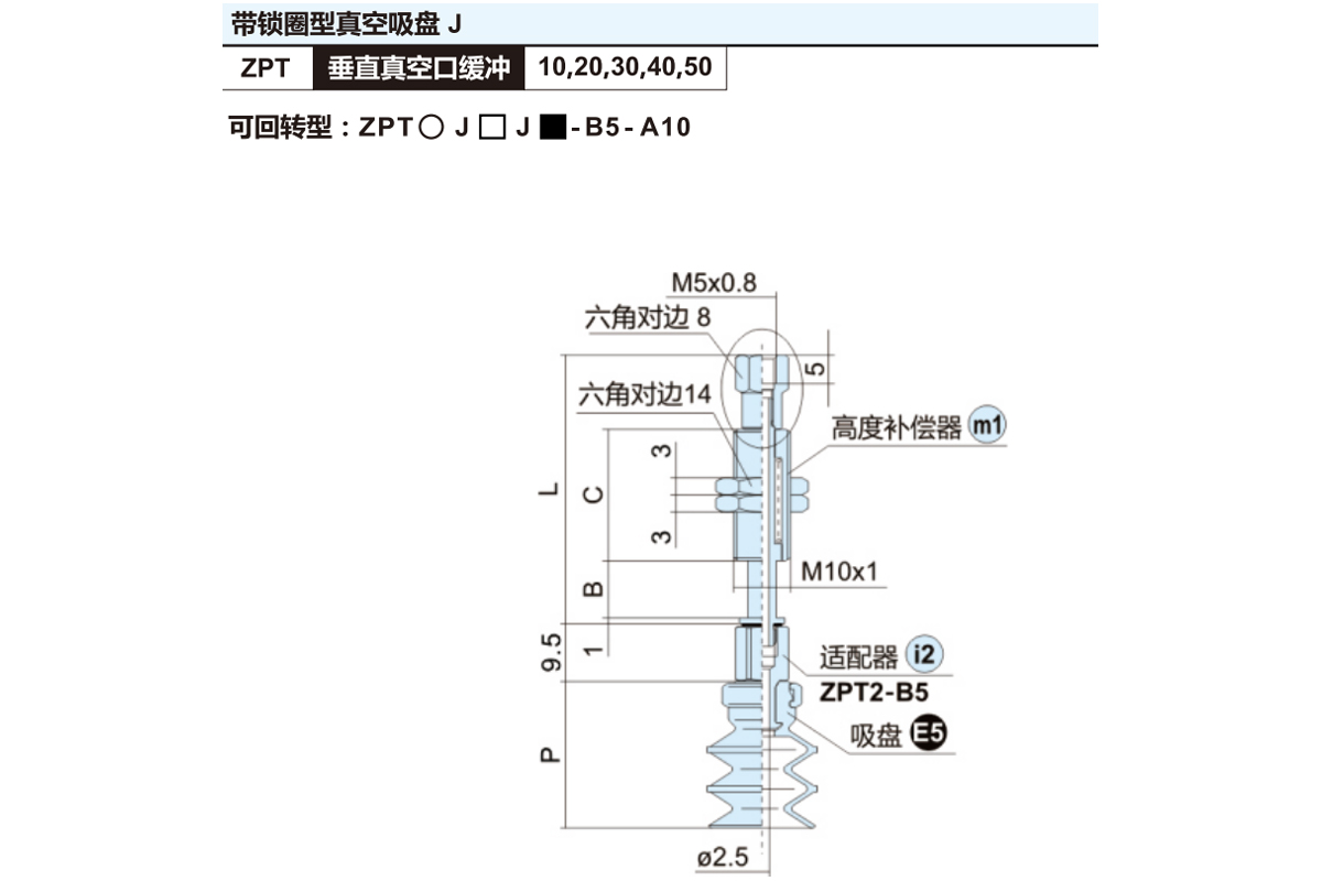 ZP系列带锁圈真空吸盘带适配器&缓冲支架(适用Ø9~Ø50)集成锁圈机构与缓冲功能的真空吸盘组件,适配多规格吸盘(Ø9~Ø50),实现稳定抓取与工件保护。