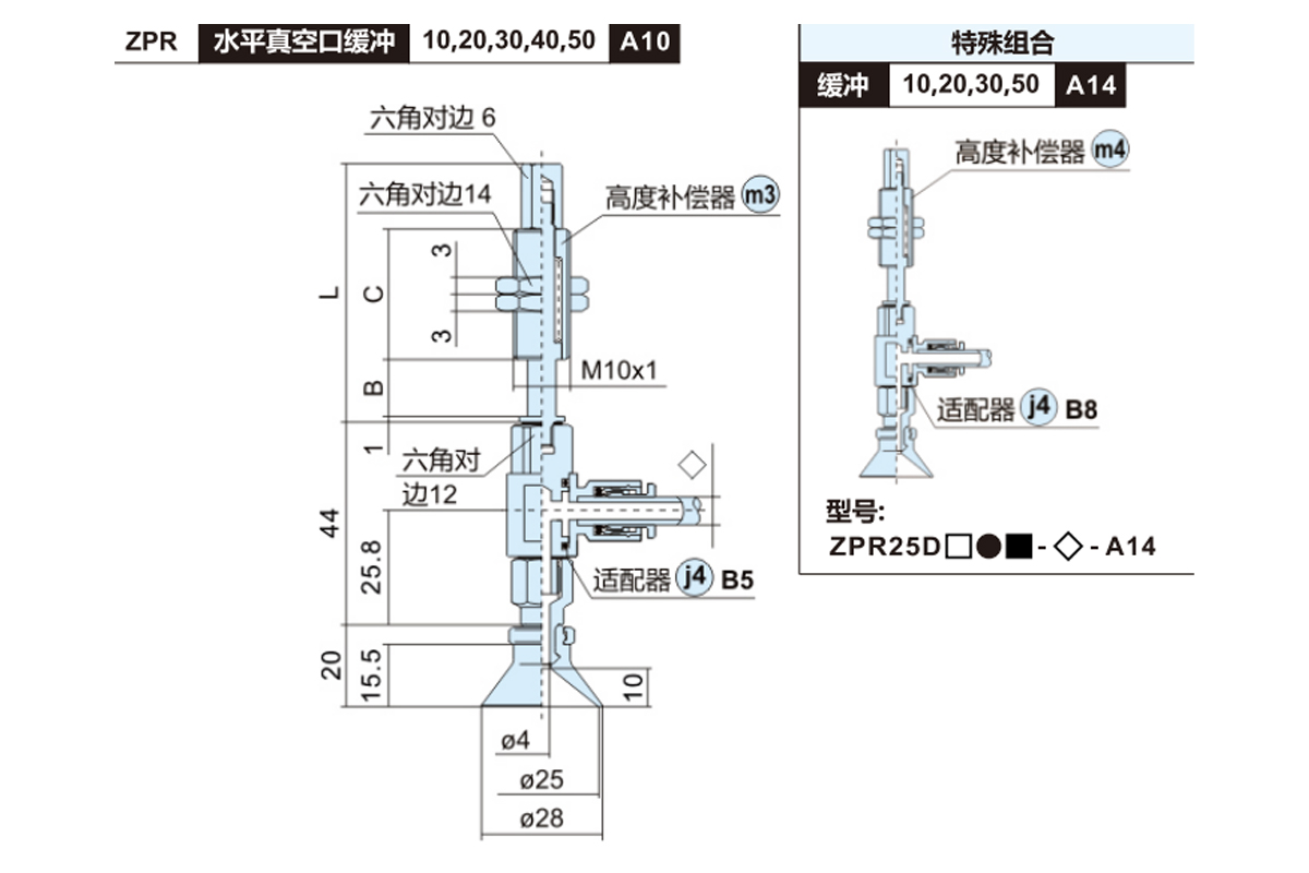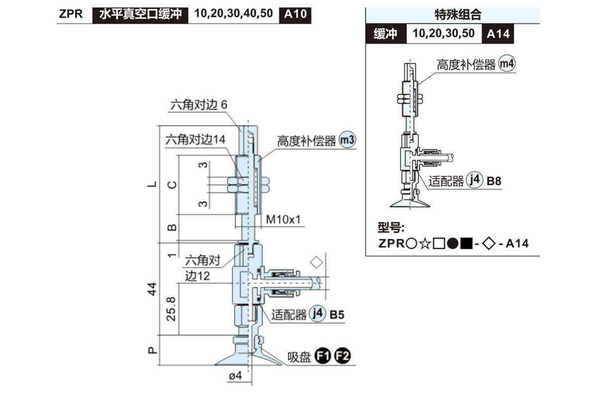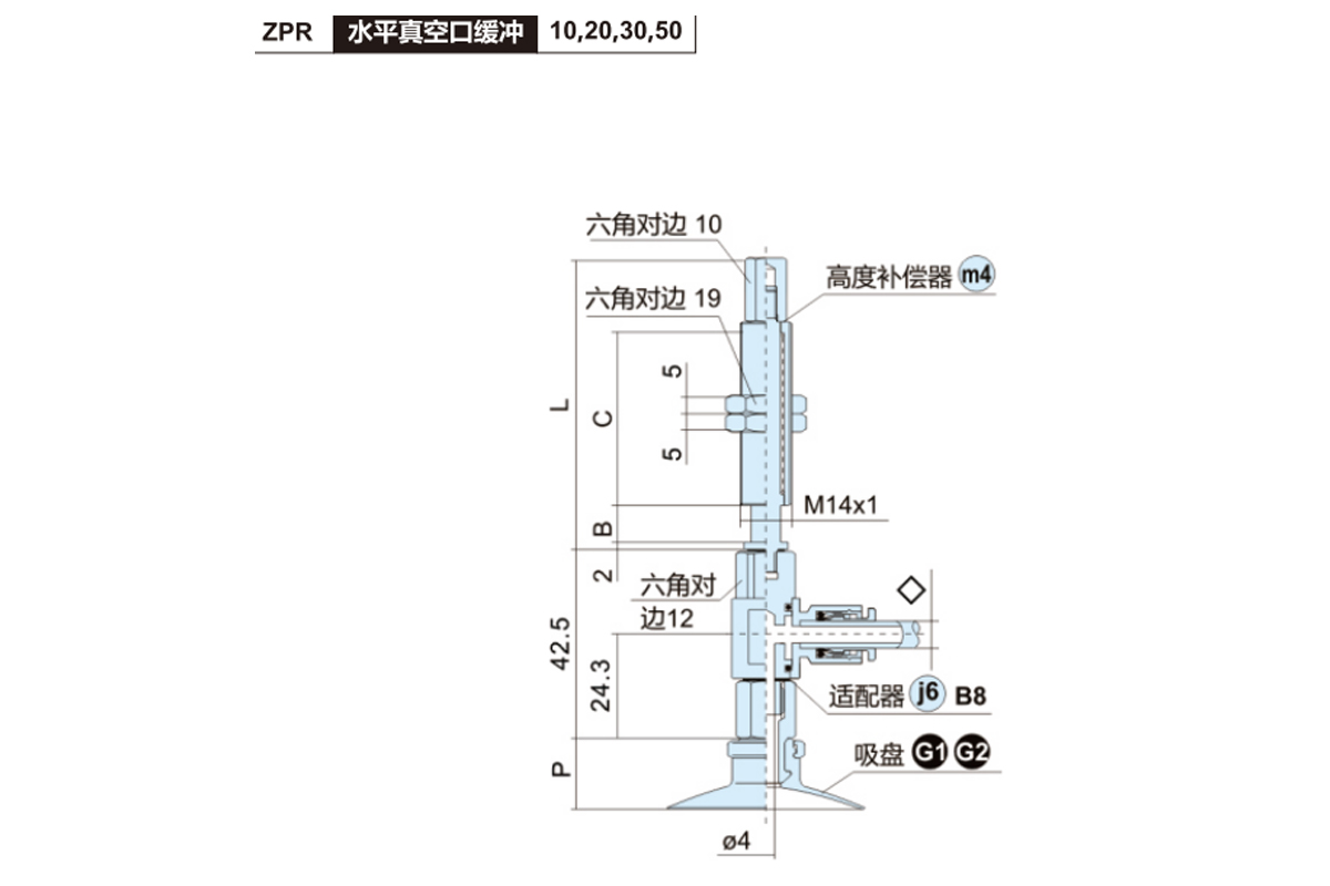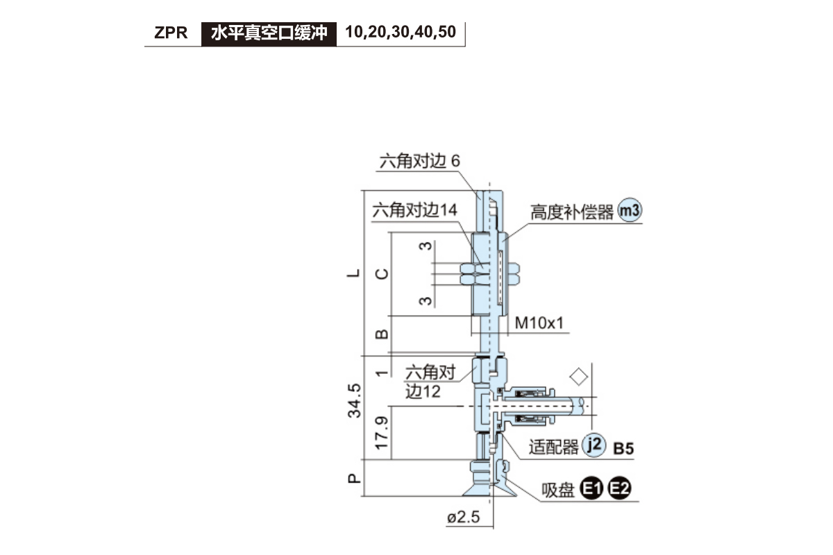 ZP系列带锁圈真空吸盘带适配器&缓冲支架(适用Ø9~Ø50)集成锁圈机构与缓冲功能的真空吸盘组件,适配多规格吸盘(Ø9~Ø50),实现稳定抓取与工件保护。
