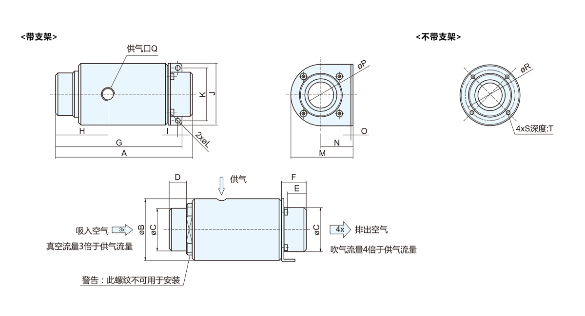 9.吹气流量4倍于供给空气流量,真空流量3倍于供给空气流量