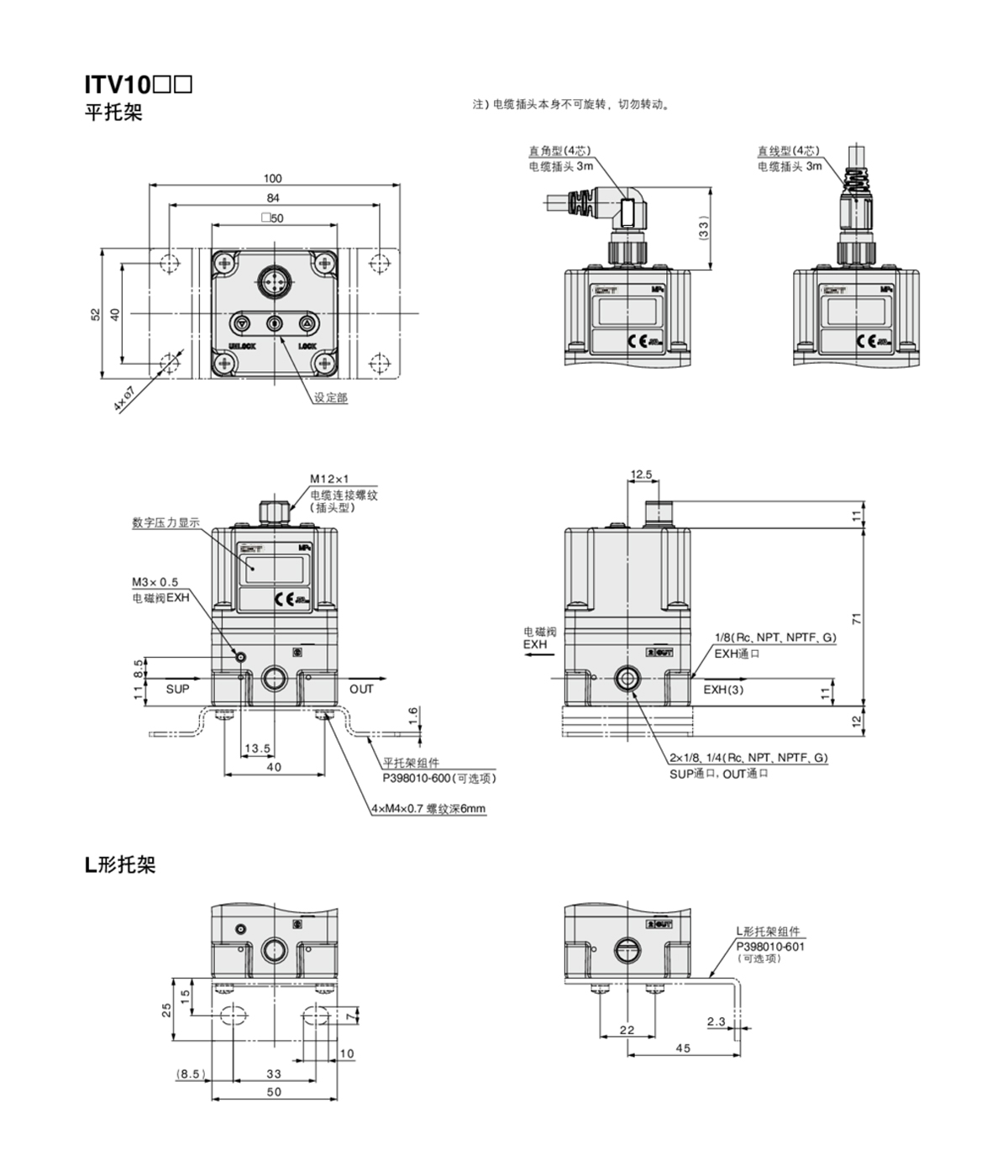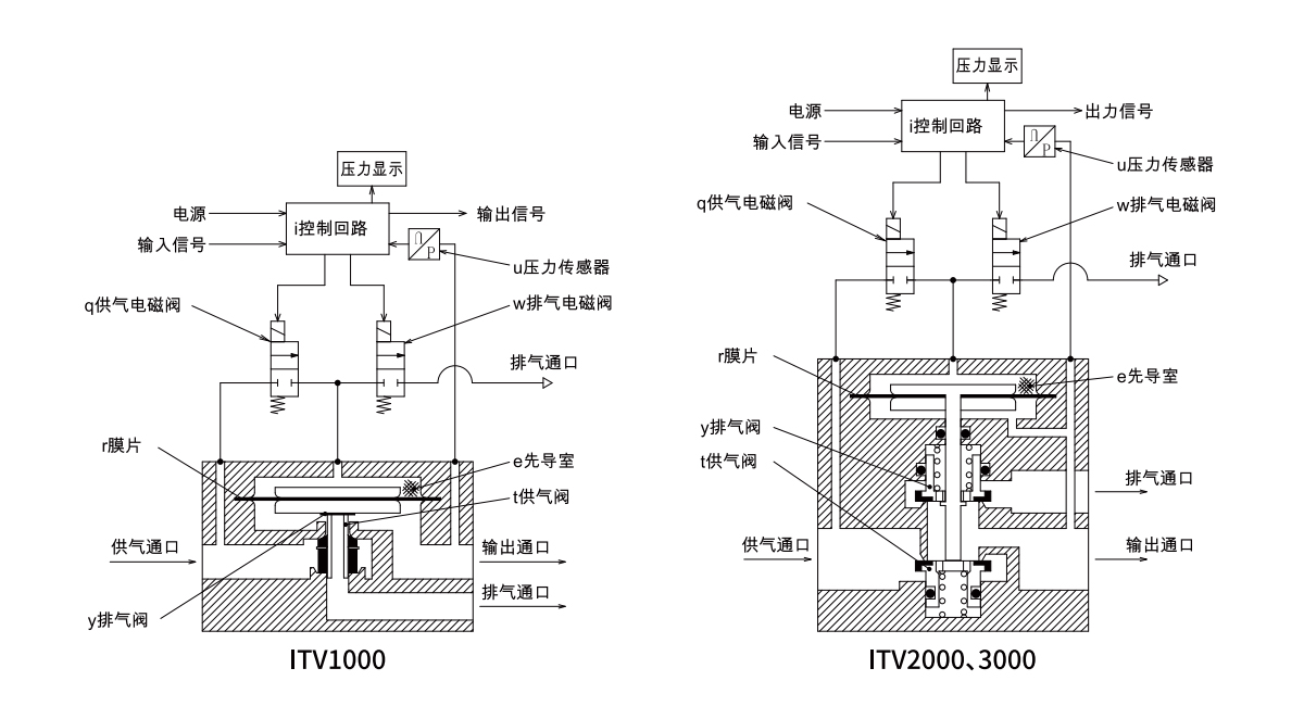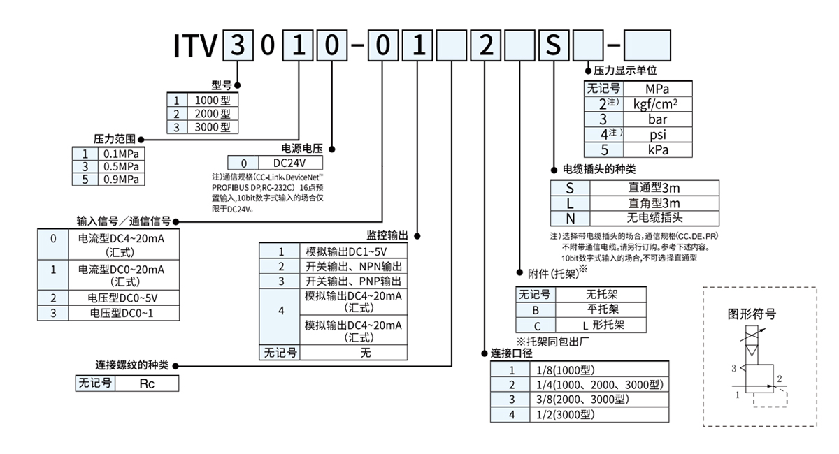 ITV电气比例阀通过电信号无级调节气体压力,实现高精度、连续的气压闭环控制。其核心采用压力传感器实时反馈,结合先导阀动态调节,输出压力与输入信号保持线性关系。具备快速响应(≤0.2s)、高精度(±1%F.S.) 及多压力范围覆盖(-101kPa~0.9MPa) 特性,适配工业自动化中的精密压力控制需求。
