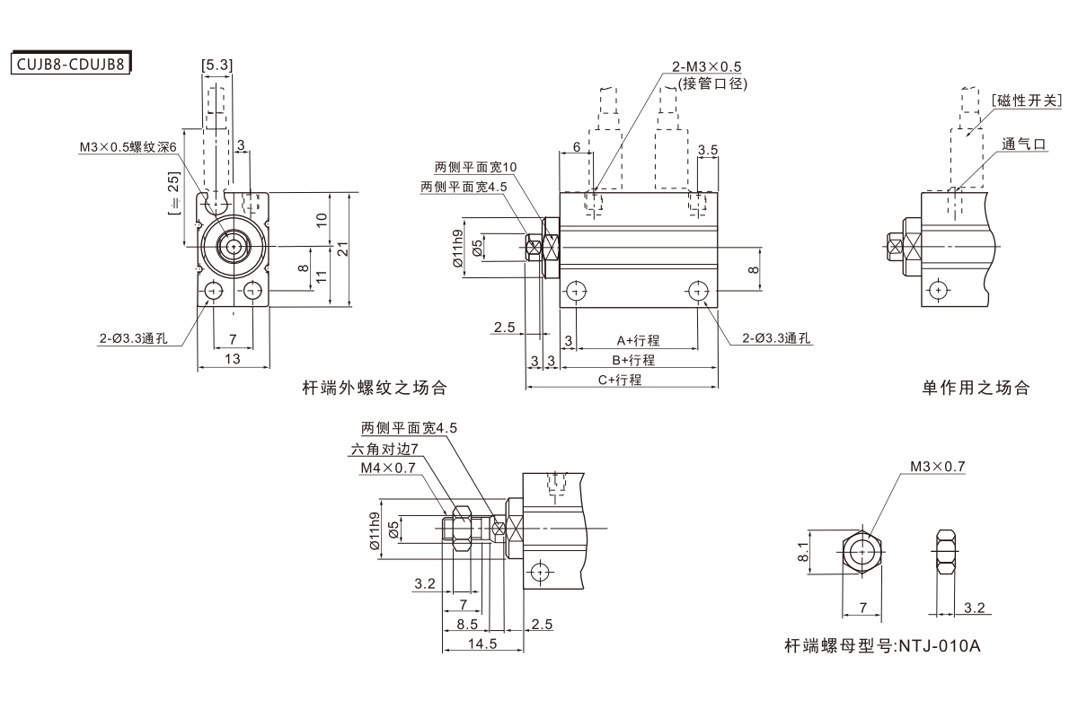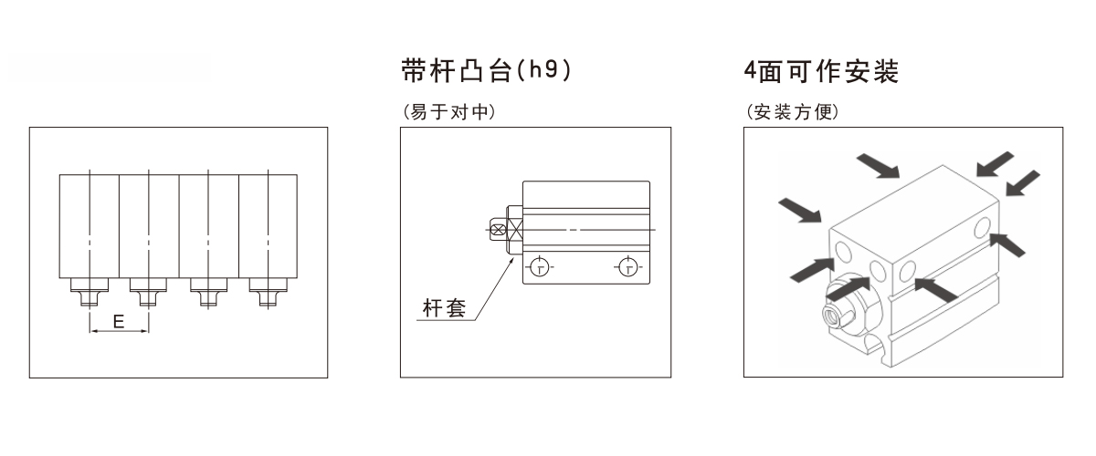 CUJB系列小型自由安装型气缸,适用于空间受限工况。其核心特性在于提供基础直线运动驱动的同时,依托结构优化实现高度灵活的机械集成与传感扩展能力。