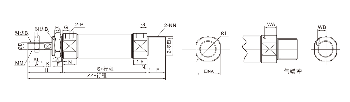 ·双缓冲适应性:气缓冲与橡胶垫缓冲双配置可选,适配不同负载工况的末端制动需求。