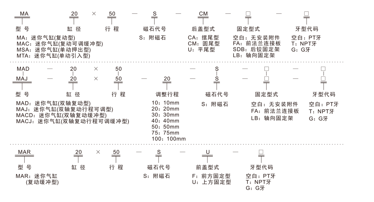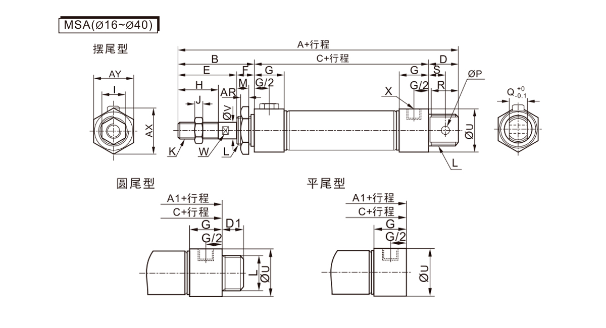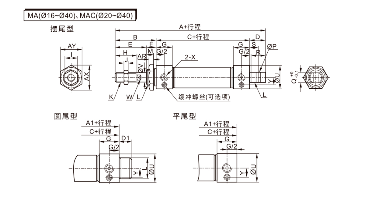 2. 前后盖带固定式防撞垫,可减少气缸的换向冲击;