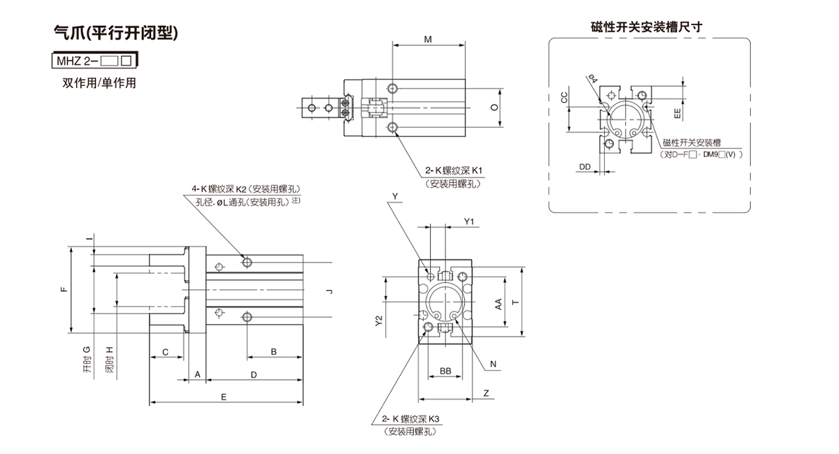 MHZ2系列平行开闭型气爪专注于提供稳定可靠的平行夹持动作,其设计理念在于平衡核心性能与适应性,满足自动化执行环节中对精密抓取的基本需求。