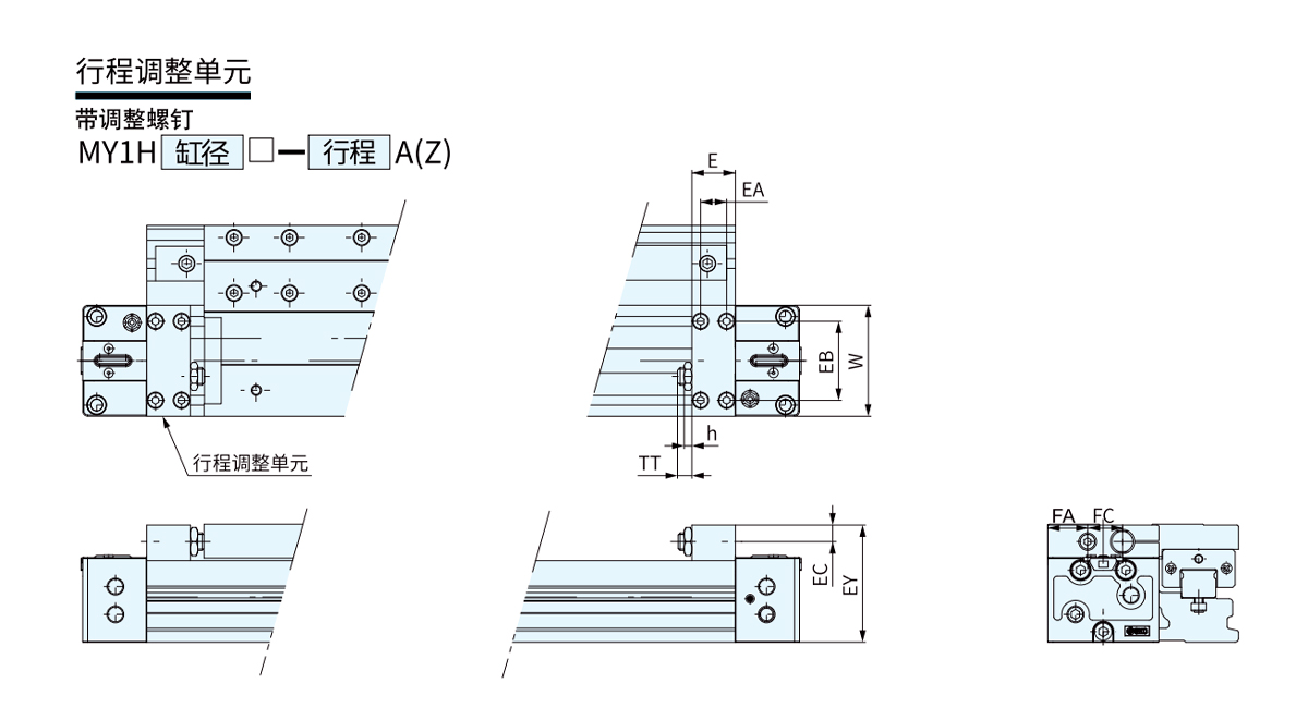 ● 空间效率优势:由于省去了活塞杆伸缩所需的前后空间,配合其集成式的导轨设计,整体结构非常紧凑,特别有利于在空间受限的设备布局中节省宝贵的轴向安装空间。