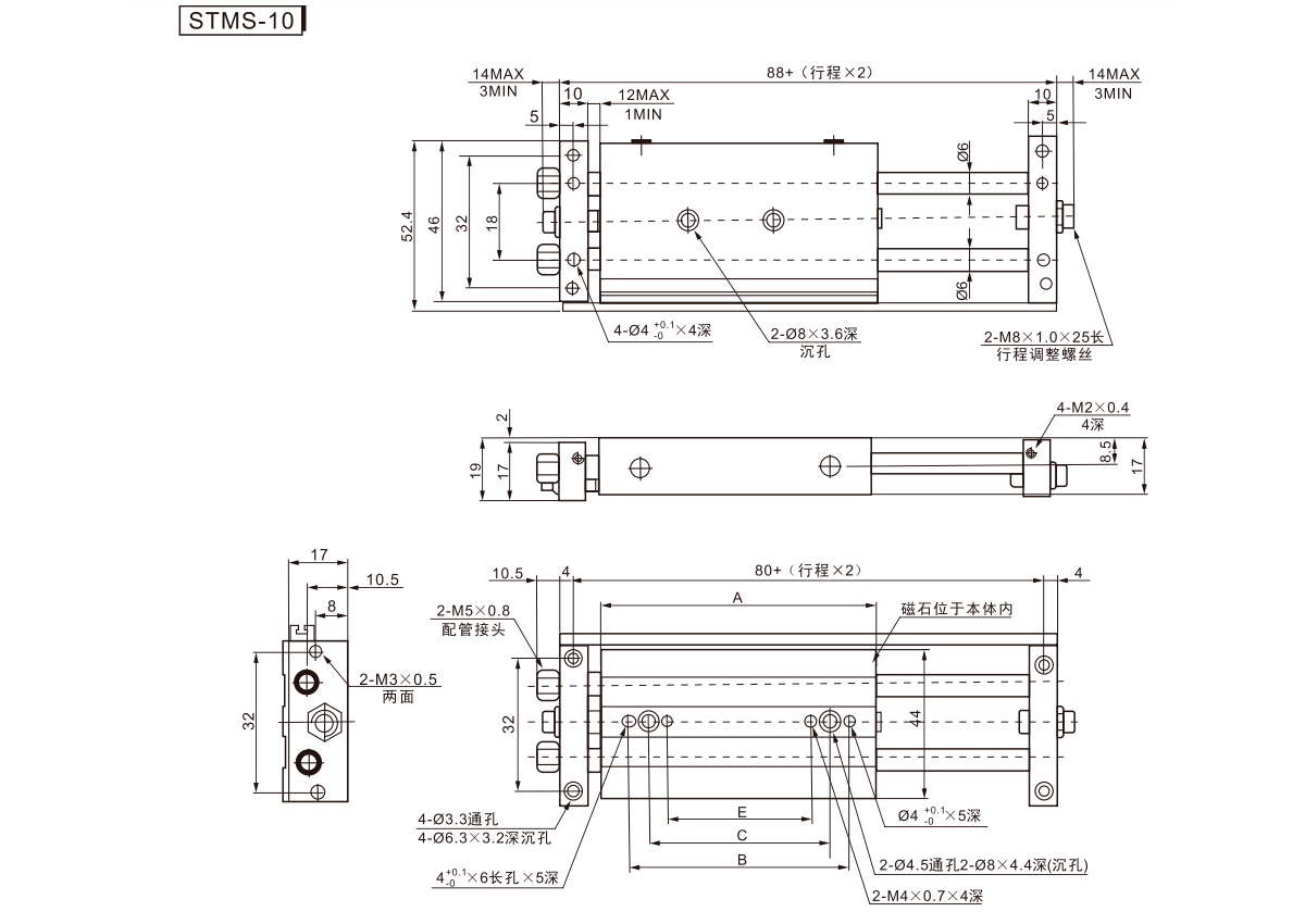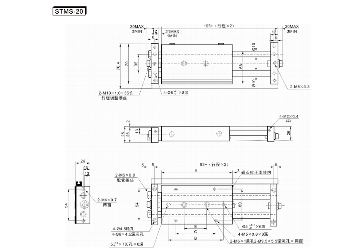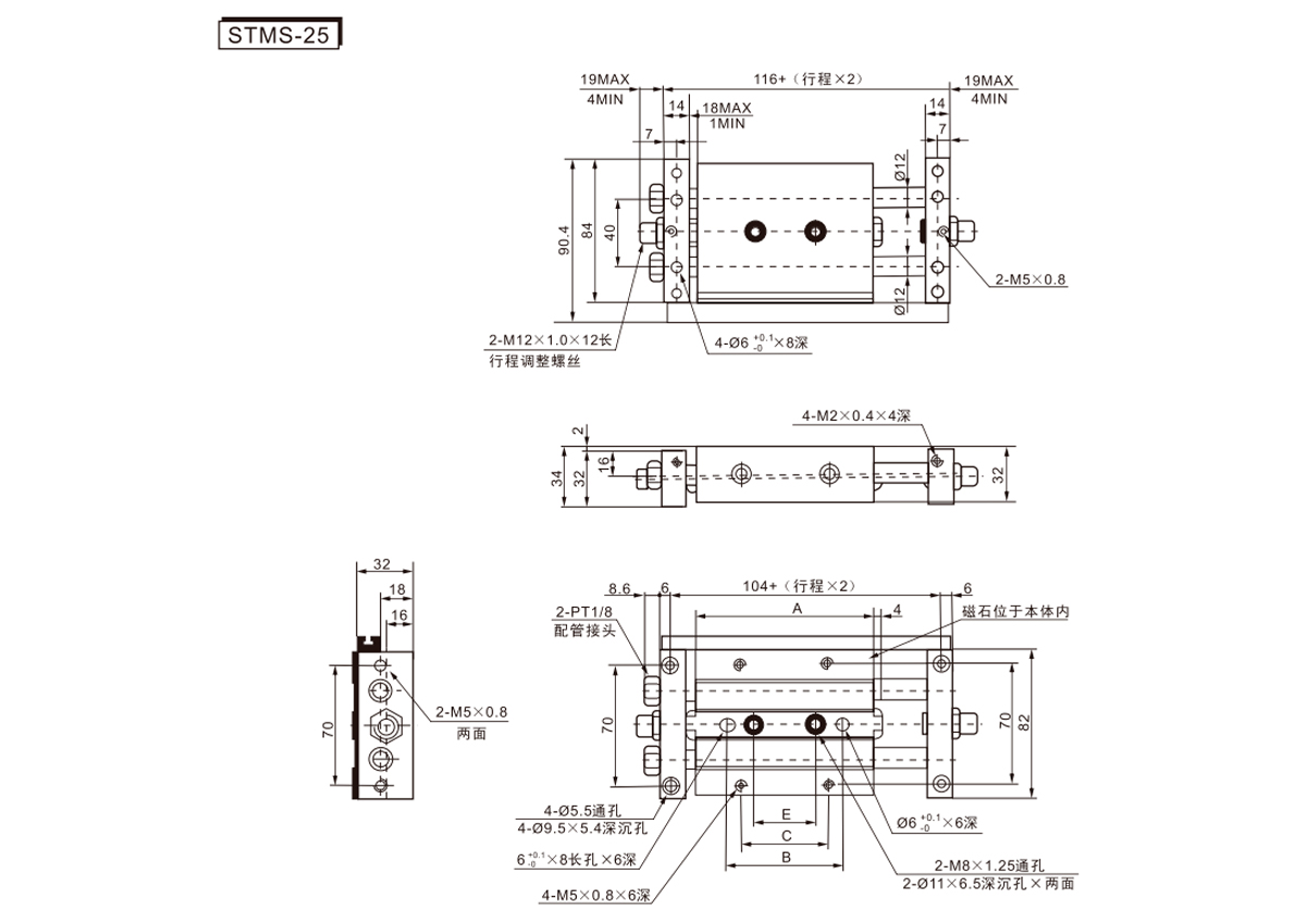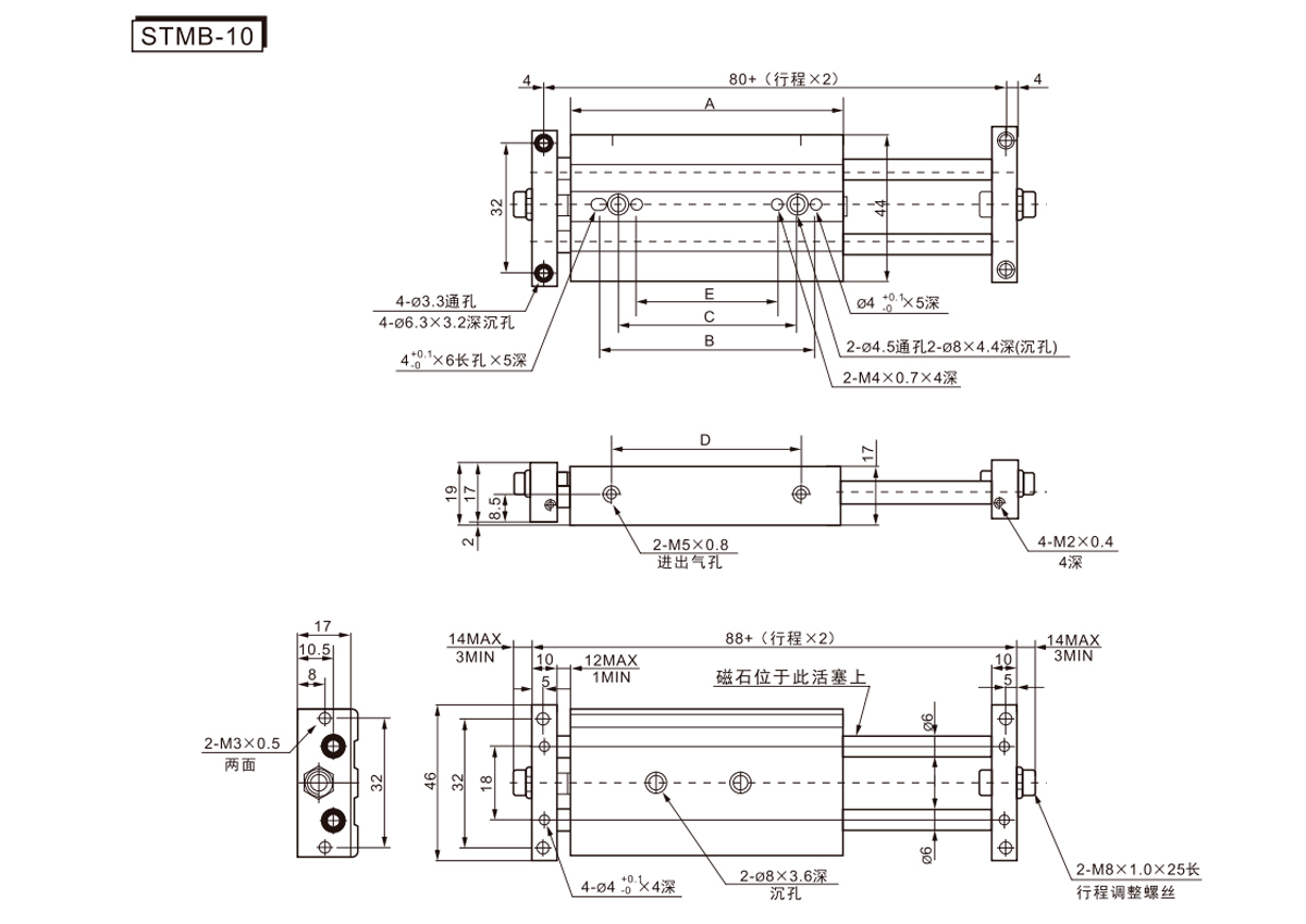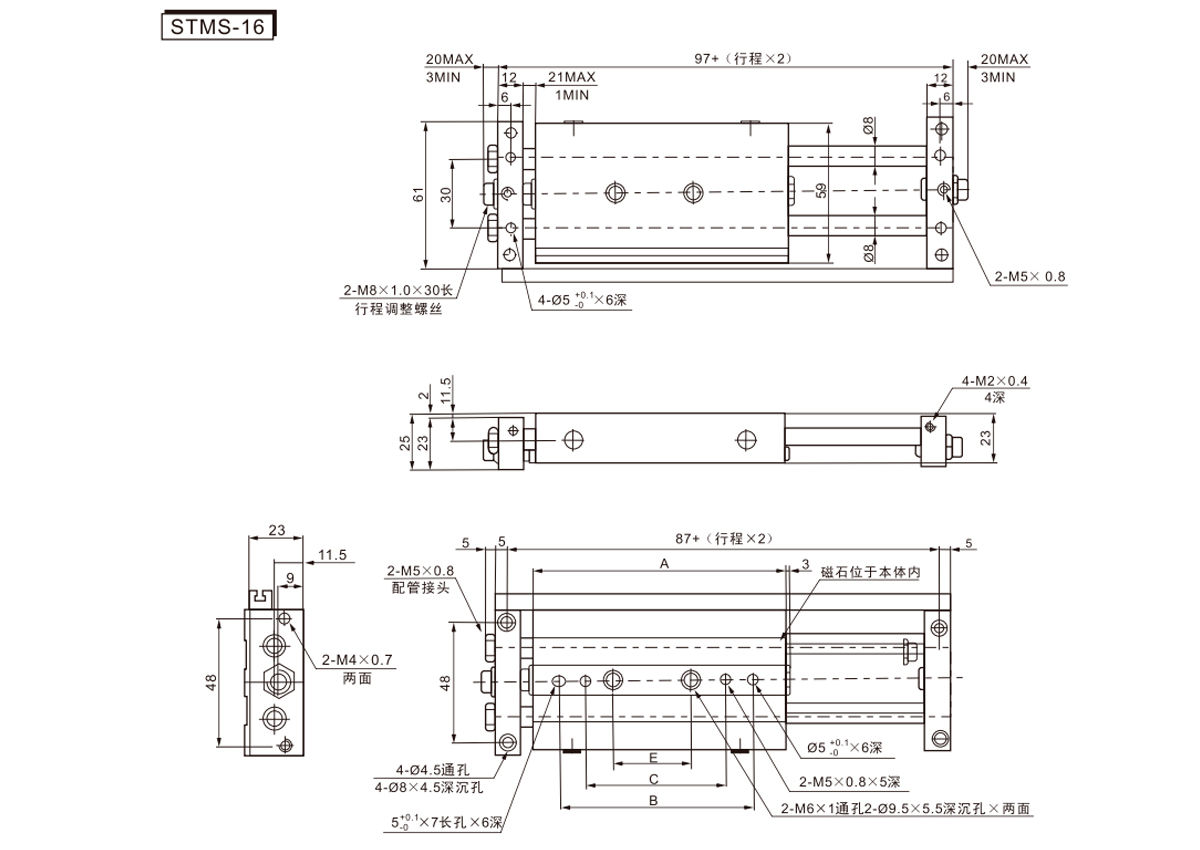 2. 双活塞杆结构,使气缸具有较好的抗弯曲及抗扭转性能,可承受较大的运动负载或侧向负载;
