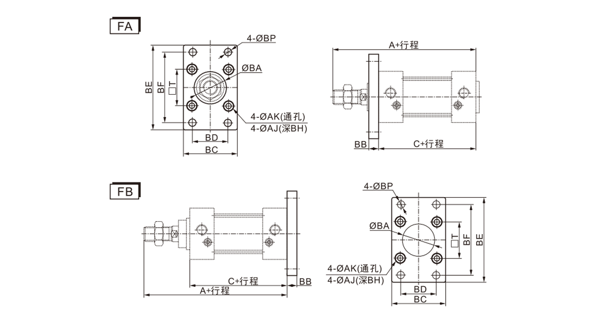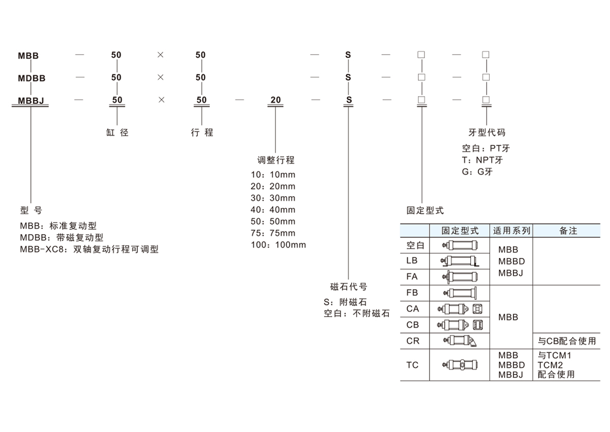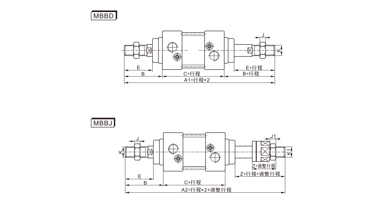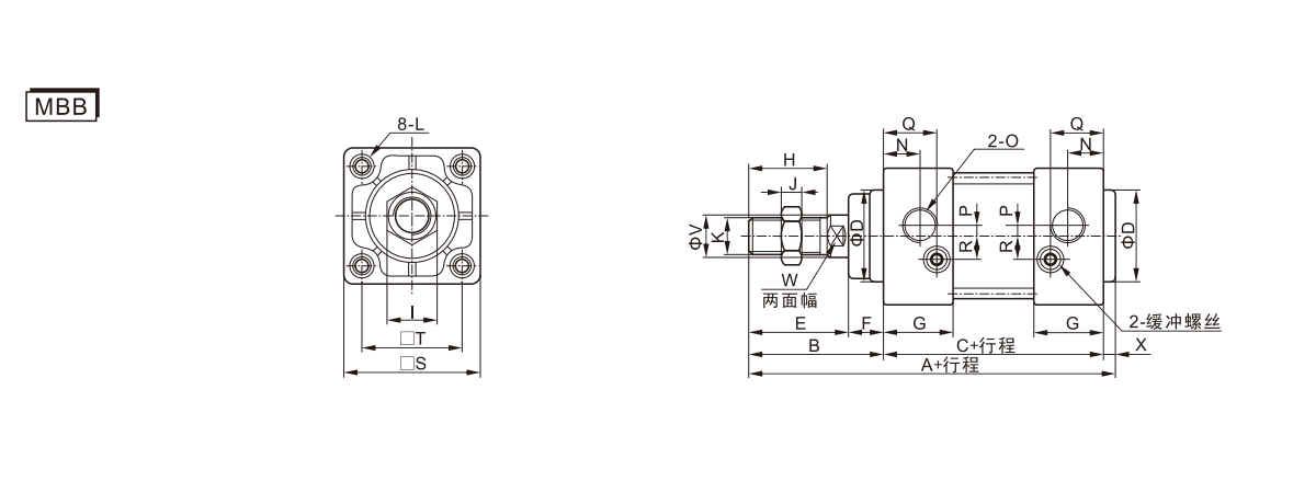 3. 与ISO15552标准气缸相比,同缸径MBB系列气缸长度小;