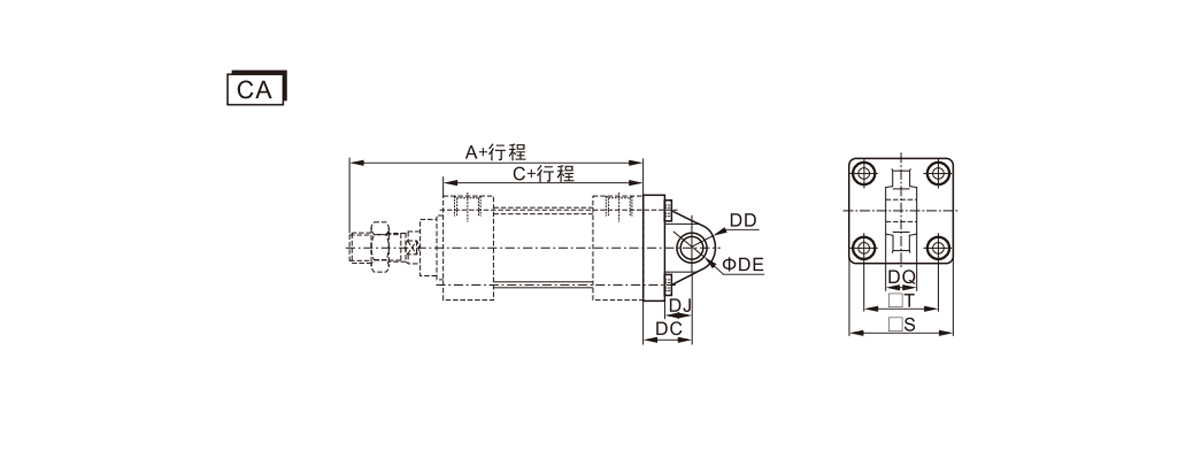 2. 为拉杆式气缸,前后盖与铝管缸体用支柱连接,可靠性好;
