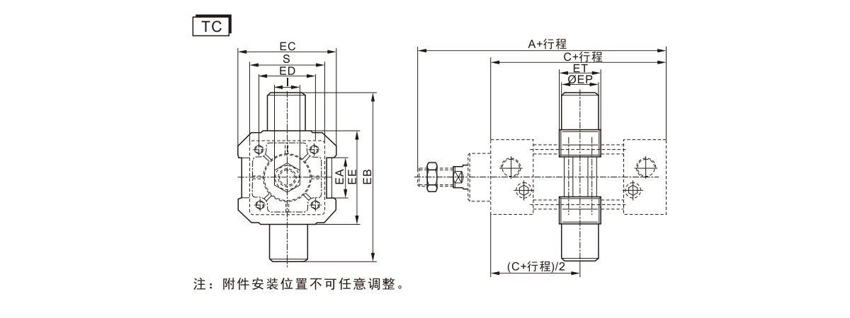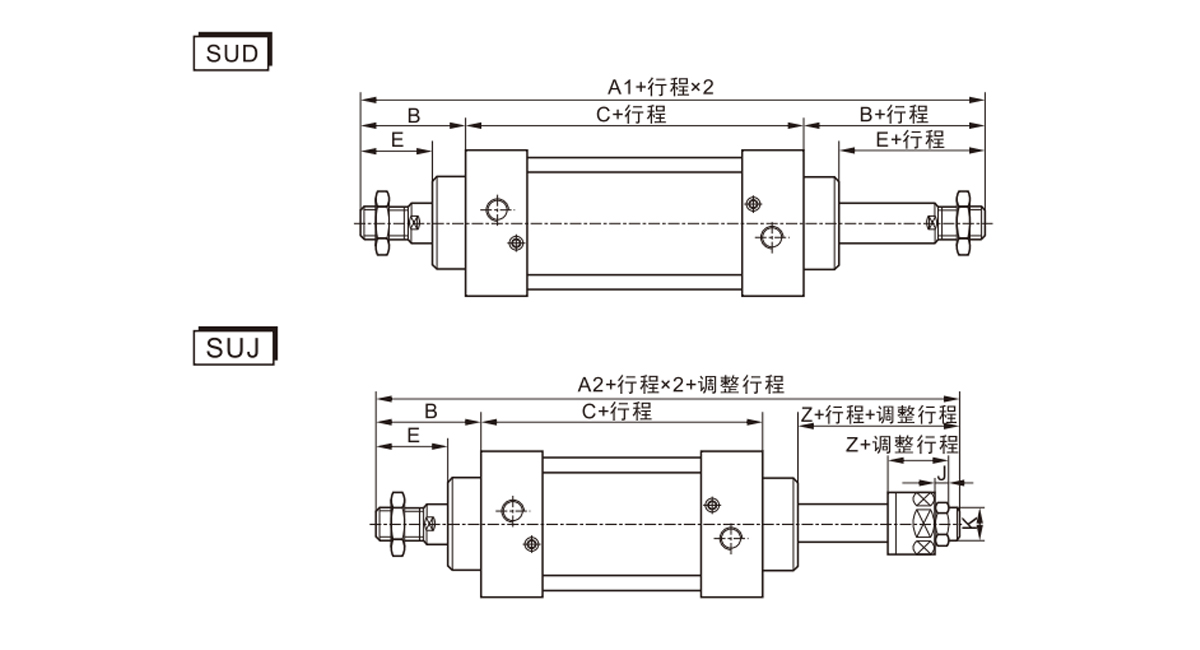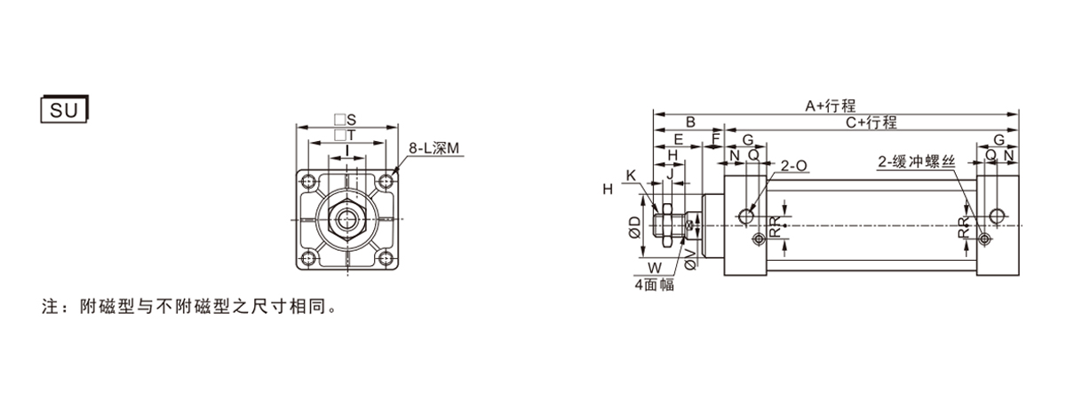 3. 与ISO15552标准气缸相比,同缸径SU系列气缸长度小;