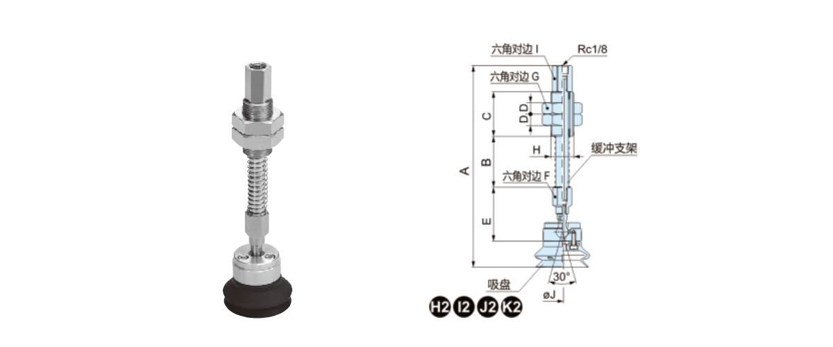 ZP2系列重载摇摆型真空吸盘(Ø32~Ø125)专为工业场景中大负荷、大倾角工况设计,通过悬浮式补偿机构实现工件表面自适应贴合,适用于金属板材、工程构件等刚性物料的移载与定位。
