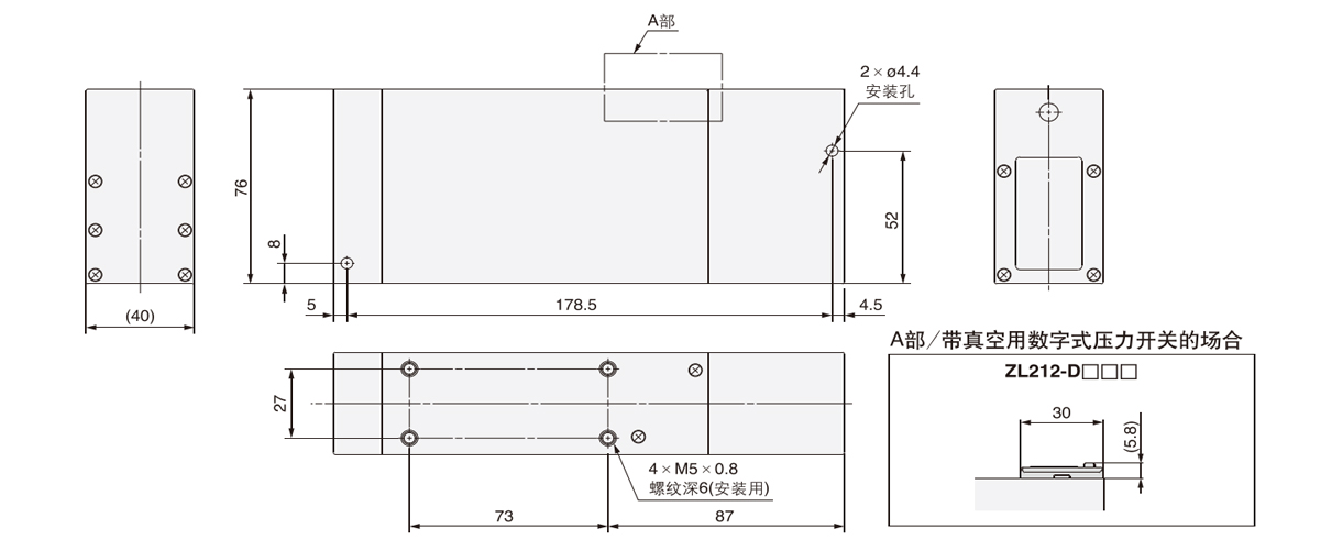 可选配真空监测组件,内置消音过滤系列,支持紧凑空间多向安装。