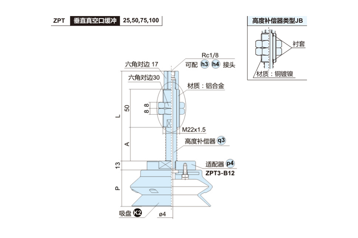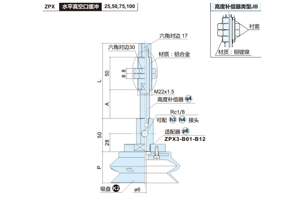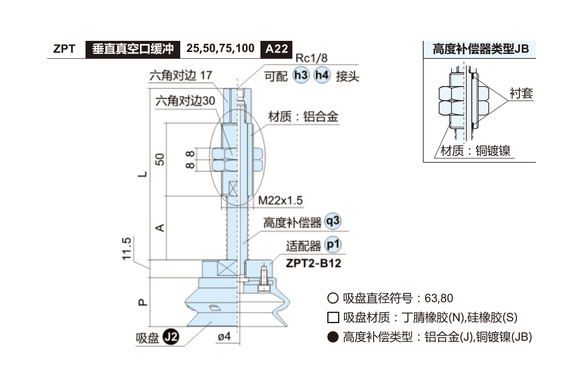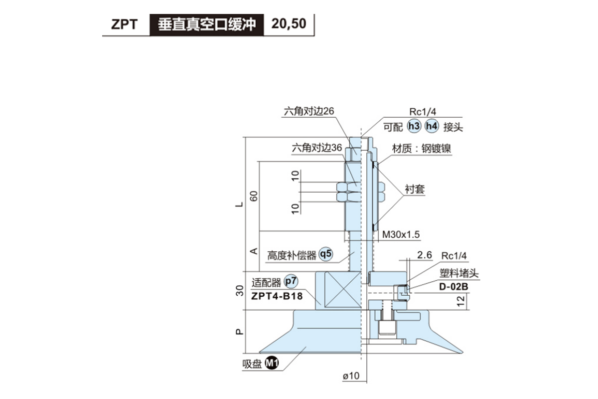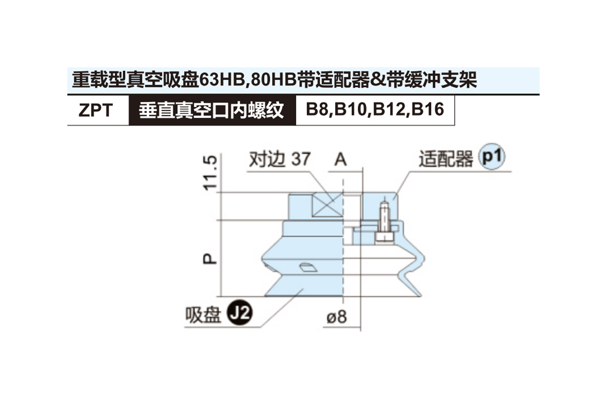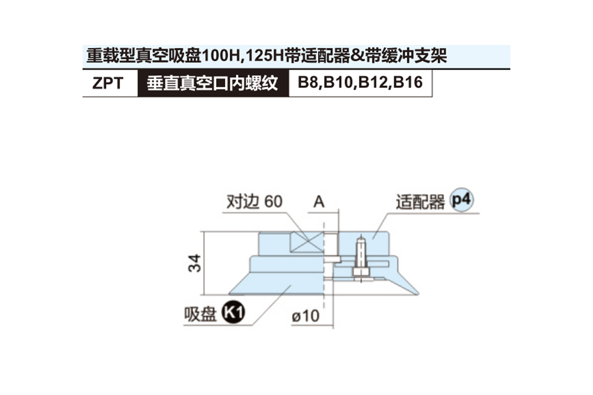 ZP系列重载型真空吸盘带适配器及缓冲支架(Ø32~Ø340)代表了专为应对严苛工业抓取需求而设计的一体化真空处理解决方案。它将核心的重载吸盘、关键接口适配器与必需的缓冲支架整合于一体,覆盖广泛的尺寸范围,旨在为搬运重型、不规则或要求平稳操作的工件提供可靠、适应性强的真空抓取基础单元。