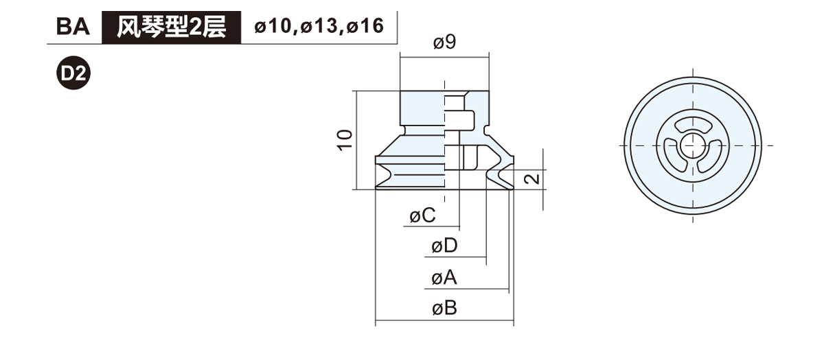 3.尺寸覆盖:直径规格涵盖02、04、06、08、10、13、16mm等,满足从微型元件到中小型物料的吸附需求。