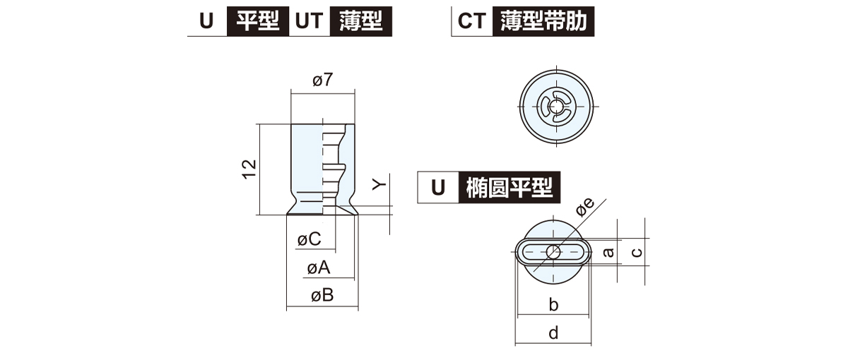形状与结构:提供圆形薄型(UT)、带肋型(CT)、椭圆形(U)、扁平型(UA)、带沟槽型(UM)及多级波纹管型(3-Stage Bellows)等多种设计。