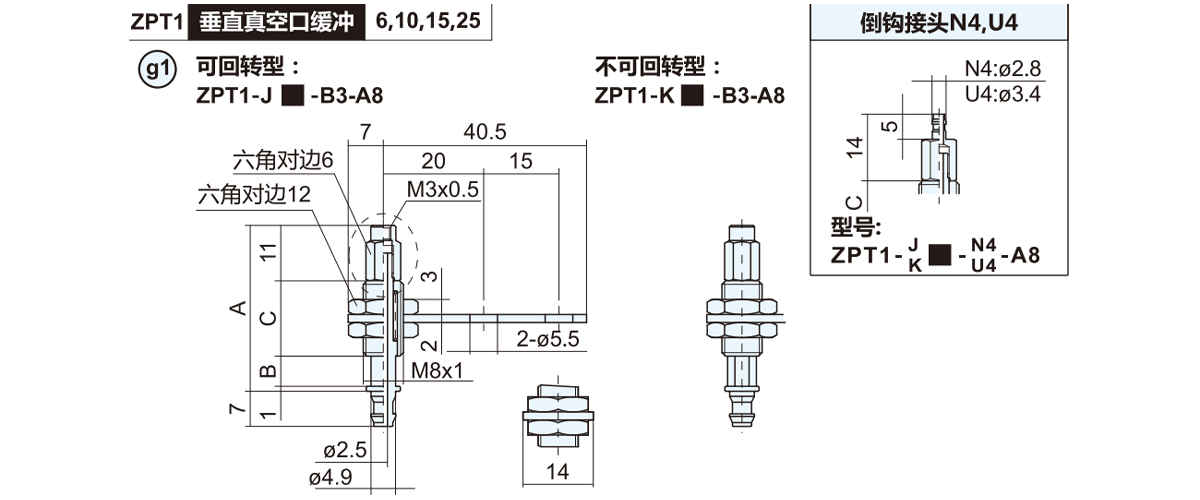 ZP系列小型&矮小型真空吸盘、带适配器&缓冲支架