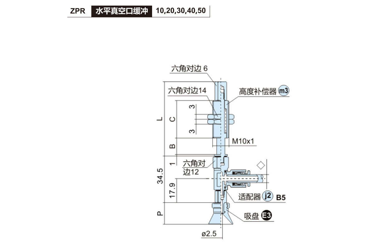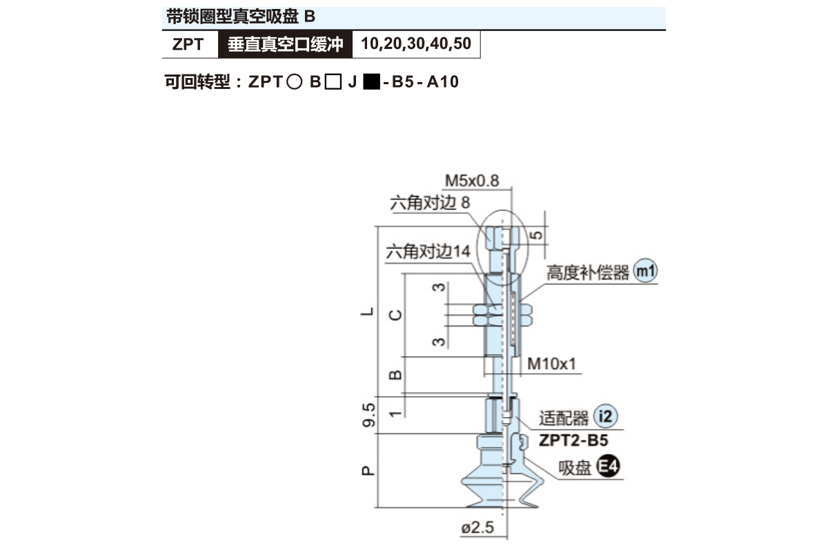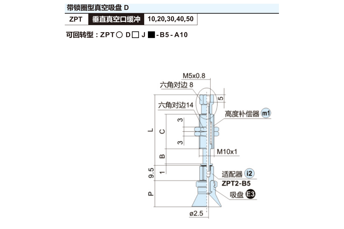 ZP系列带锁圈真空吸盘带适配器&缓冲支架(适用Ø9~Ø50)集成锁圈机构与缓冲功能的真空吸盘组件,适配多规格吸盘(Ø9~Ø50),实现稳定抓取与工件保护。