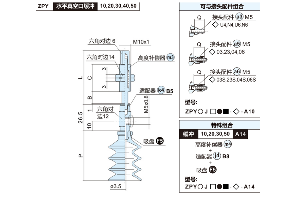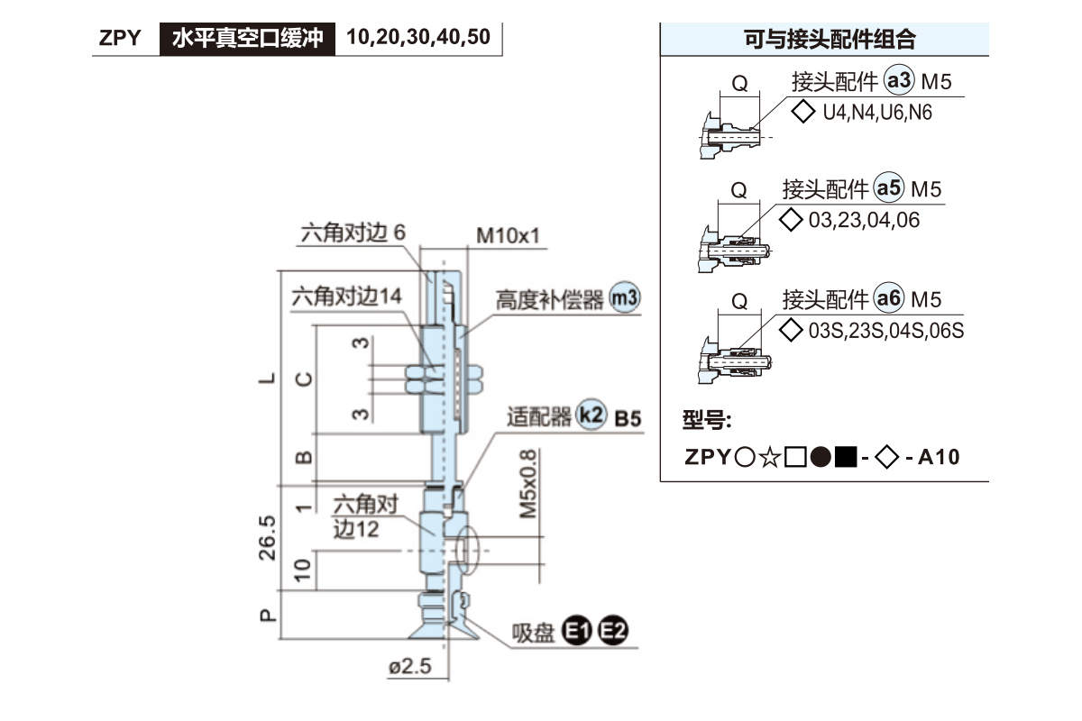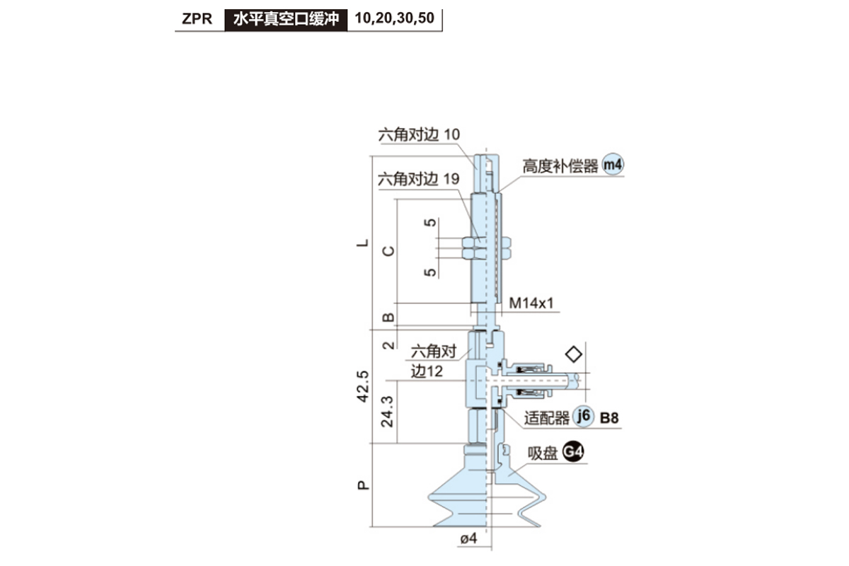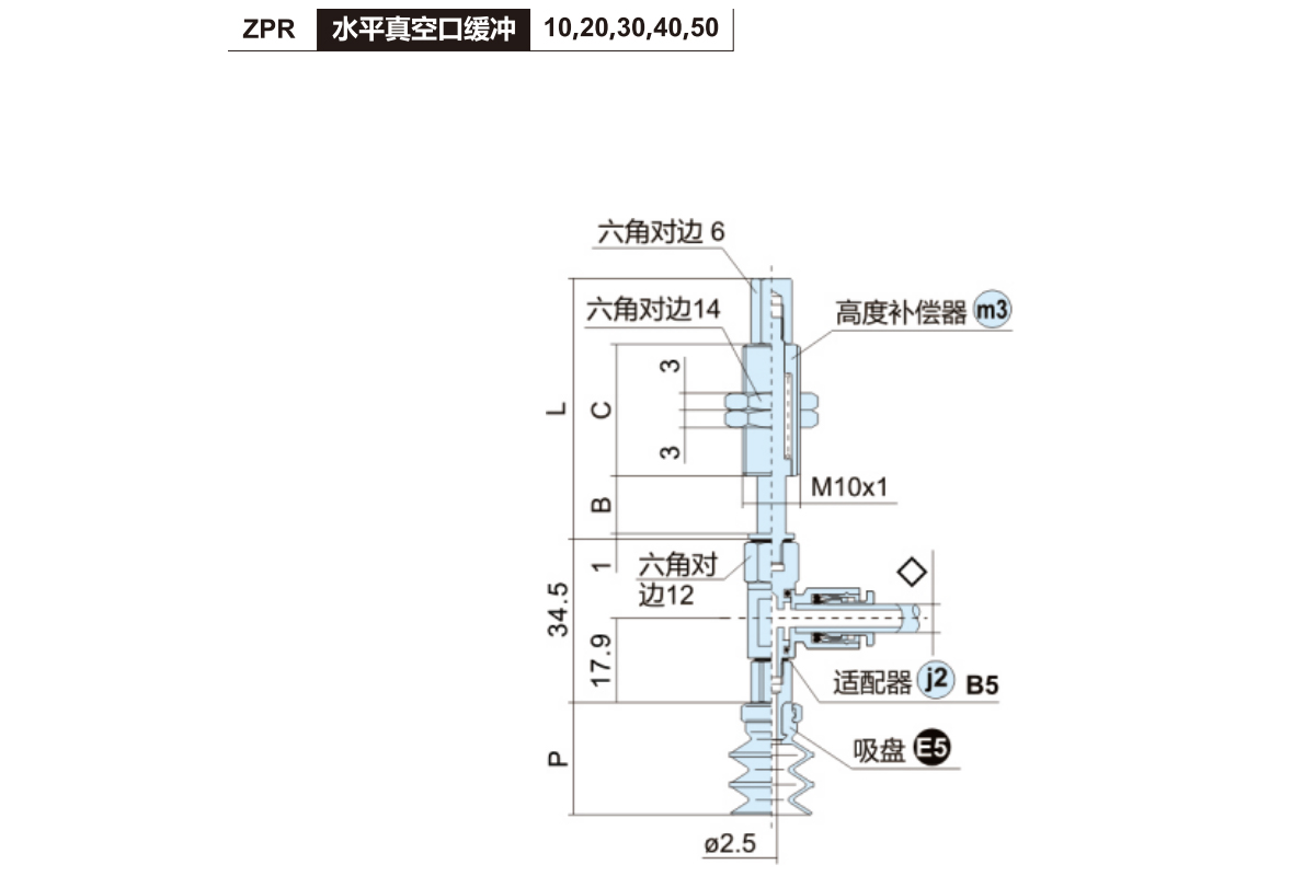 ZP系列带锁圈真空吸盘带适配器&缓冲支架(适用Ø9~Ø50)集成锁圈机构与缓冲功能的真空吸盘组件,适配多规格吸盘(Ø9~Ø50),实现稳定抓取与工件保护。