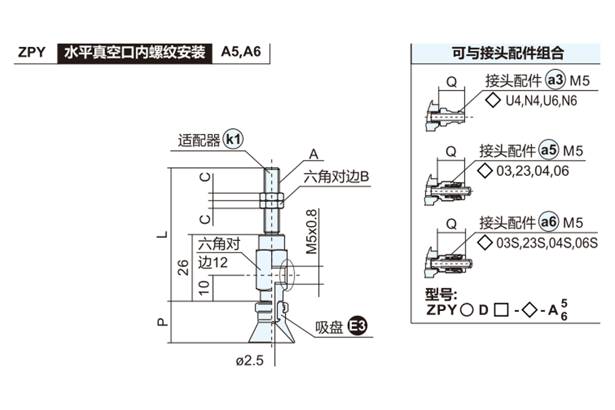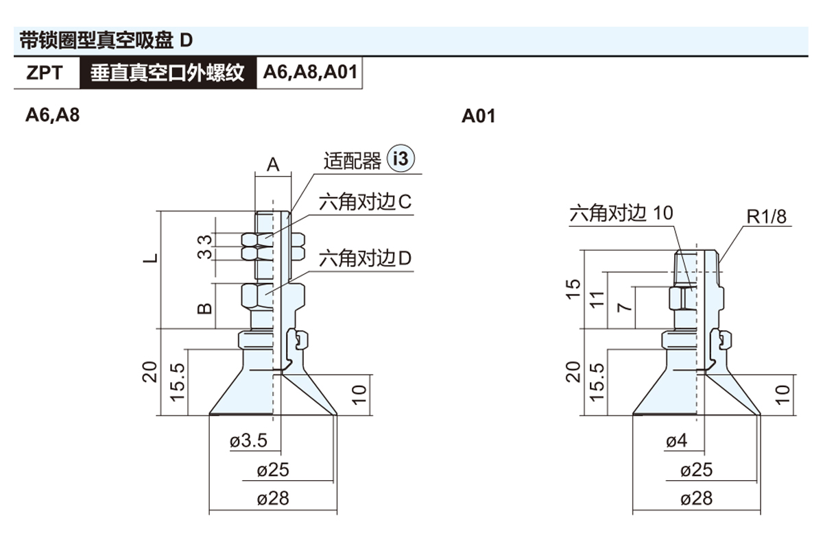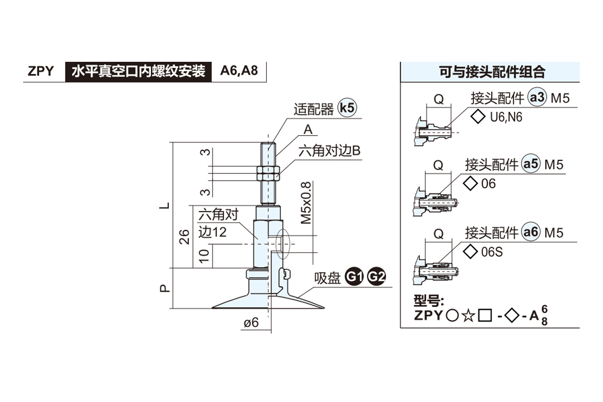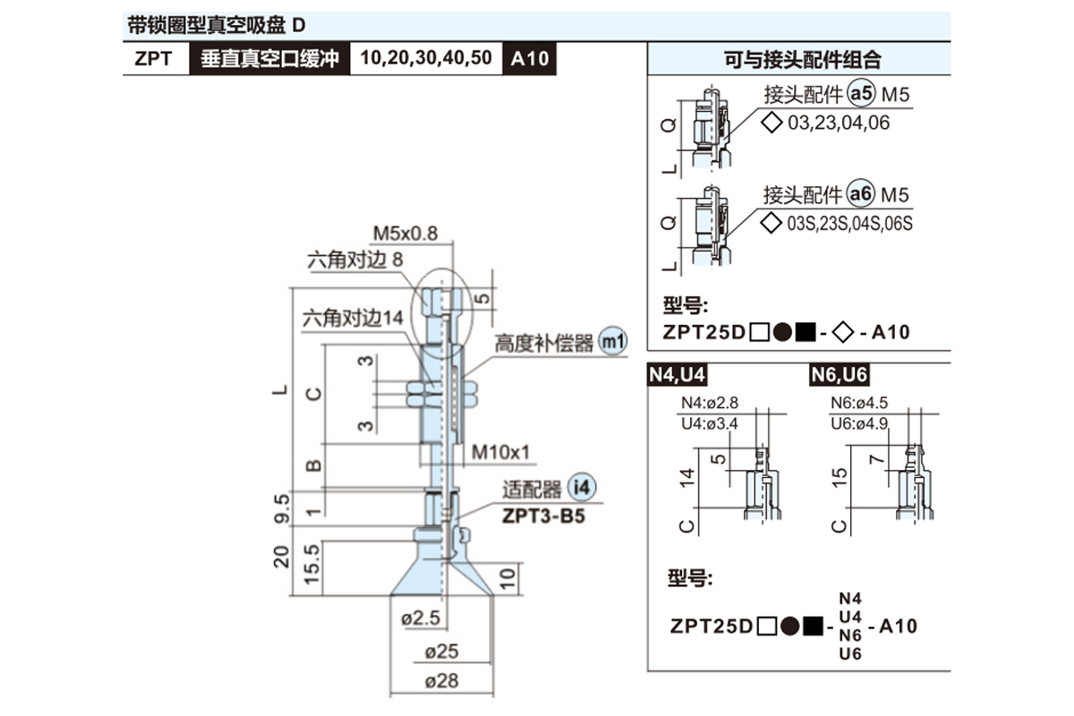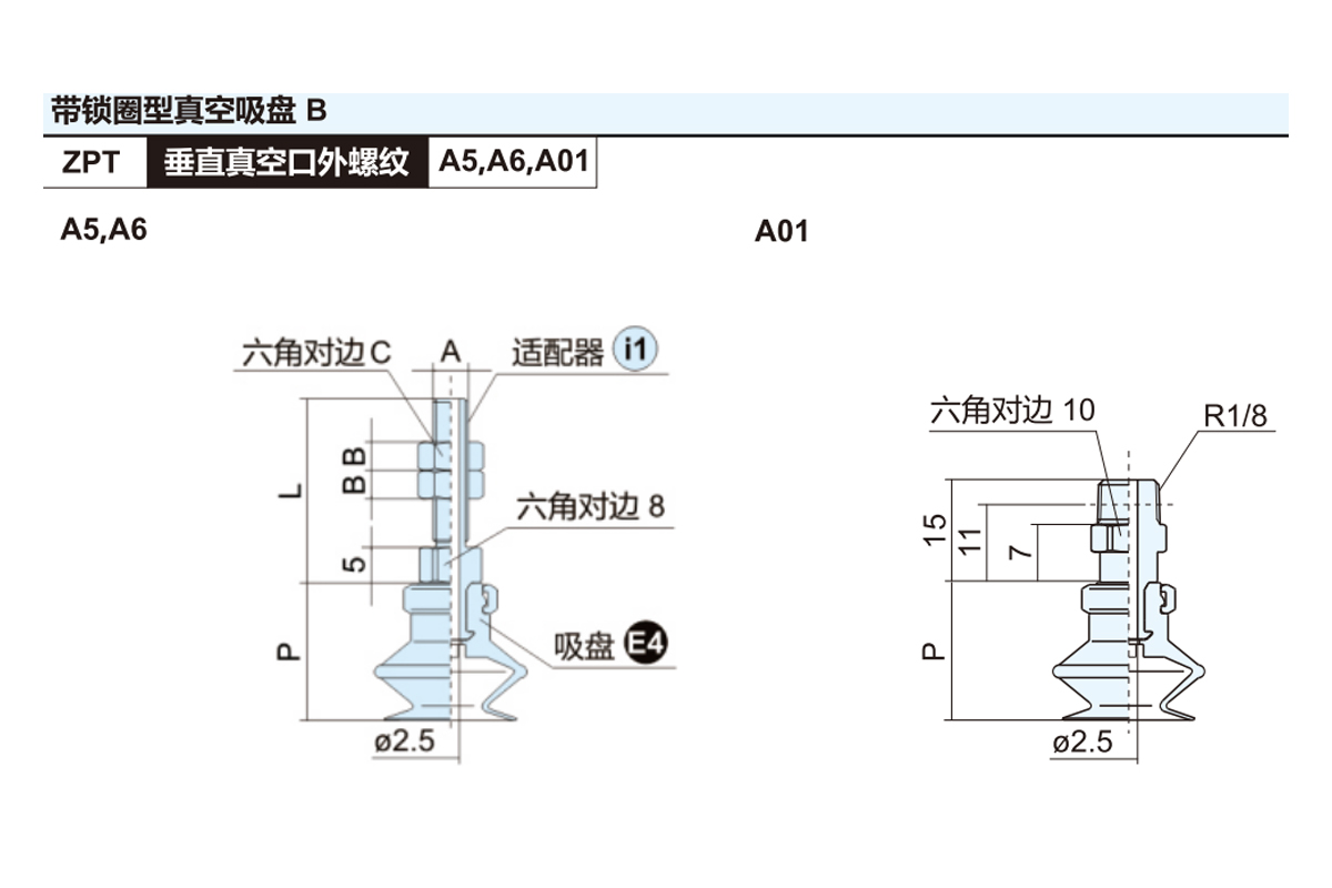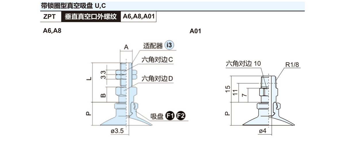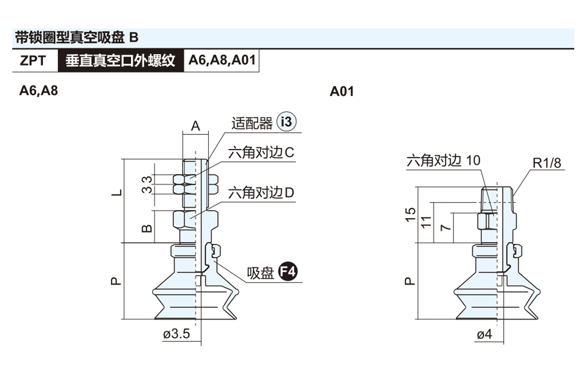 ZP系列带锁圈真空吸盘、带适配器&缓冲支架