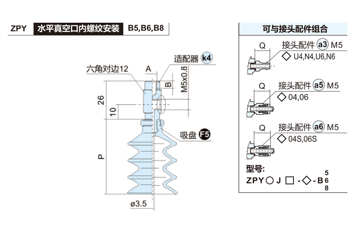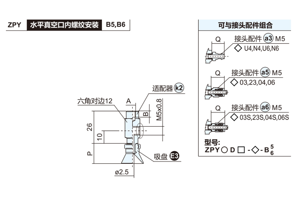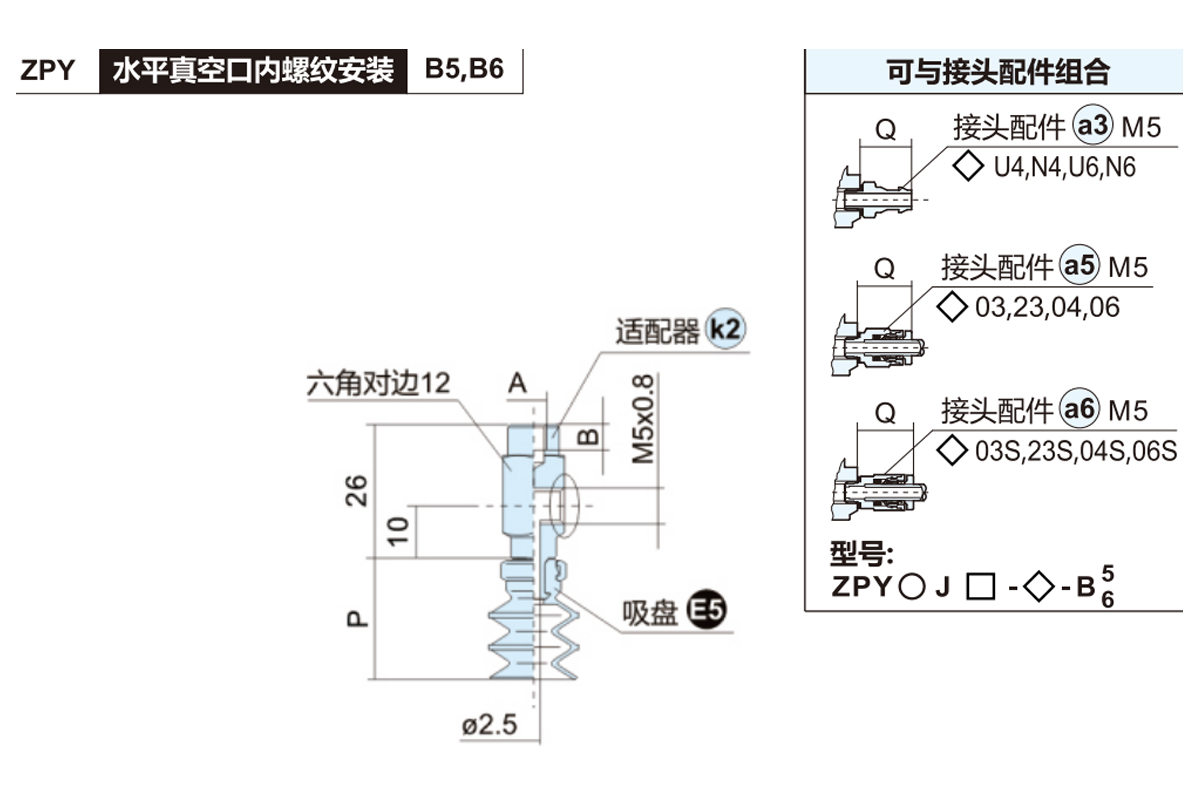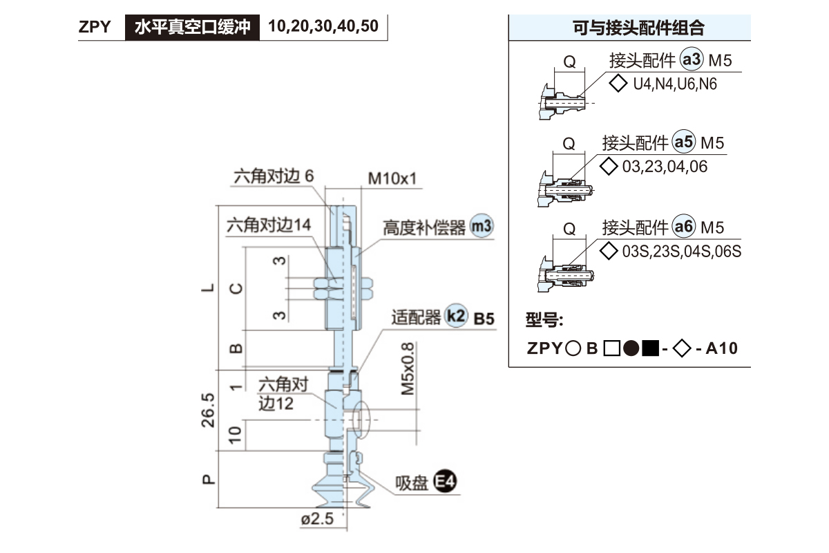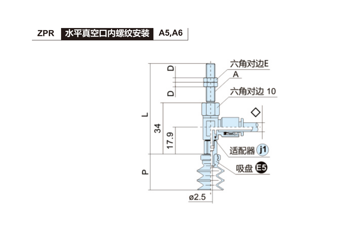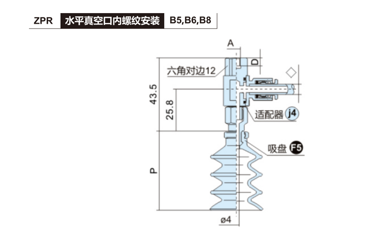 ZP系列带锁圈真空吸盘、带适配器&缓冲支架