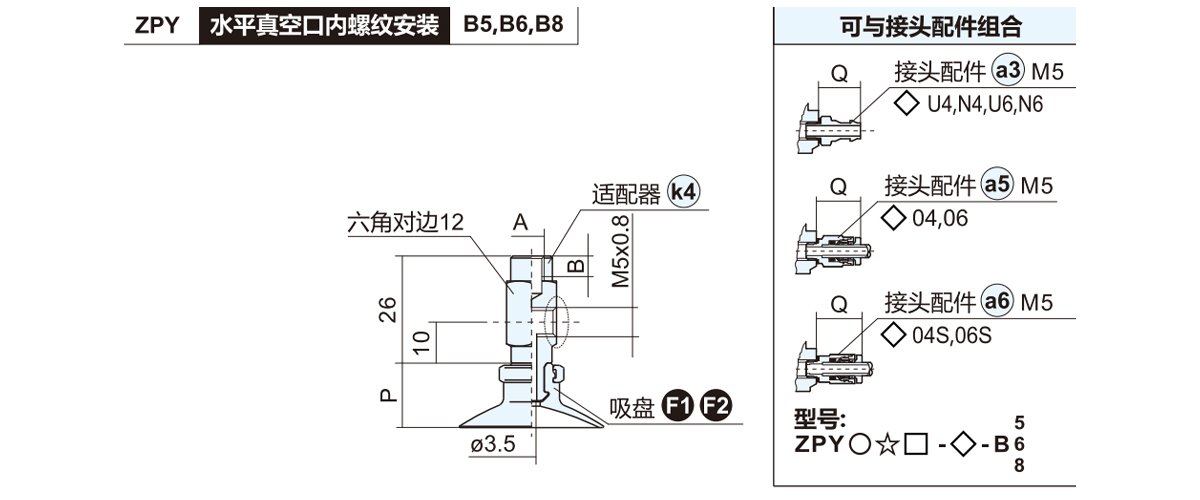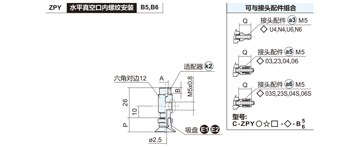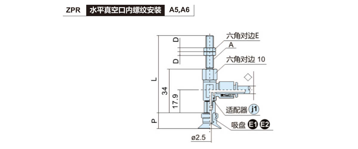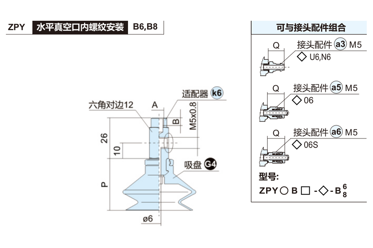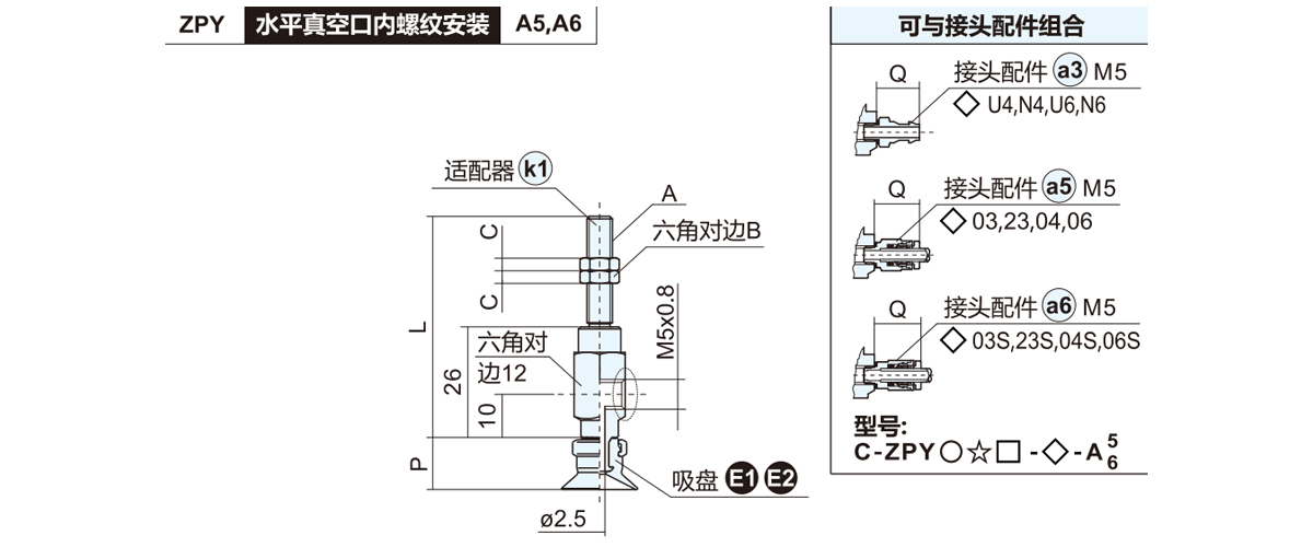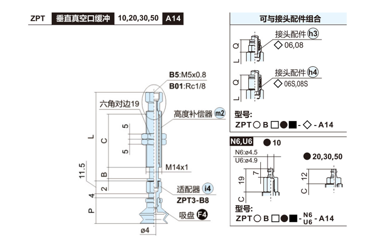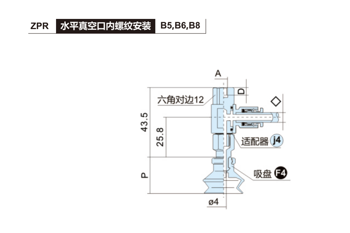 ZP系列带锁圈真空吸盘、带适配器&缓冲支架
