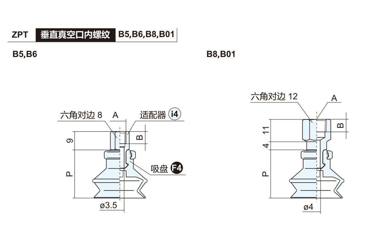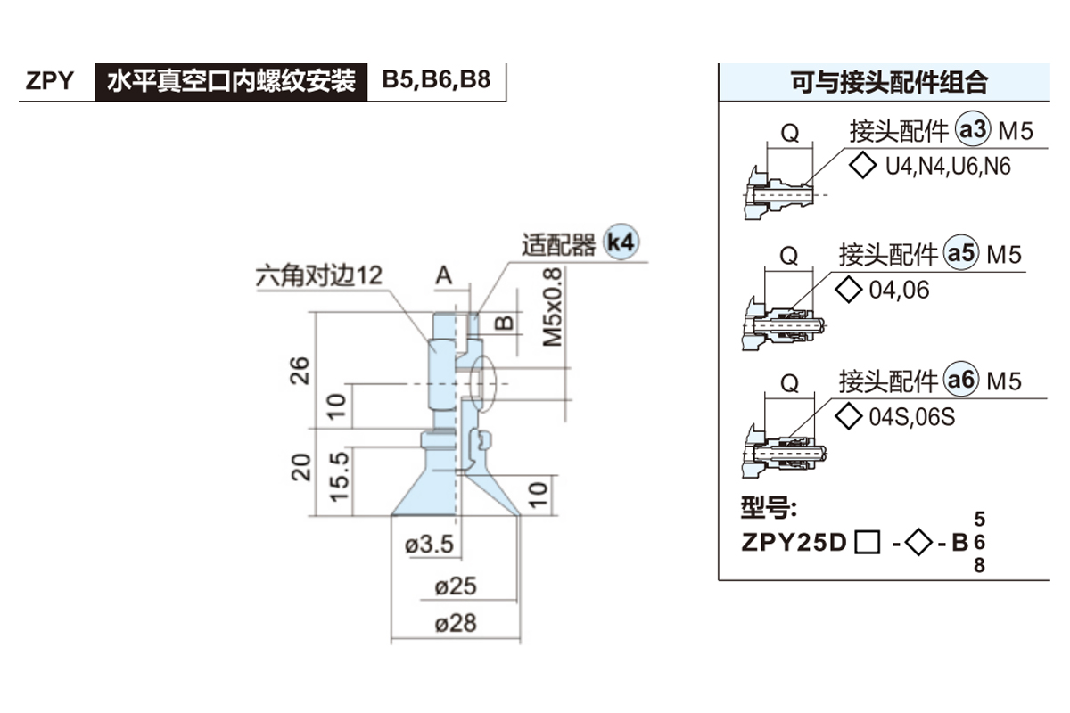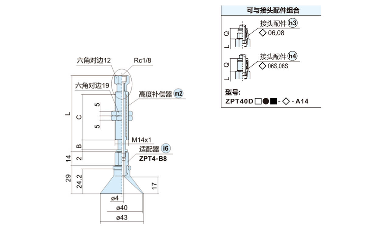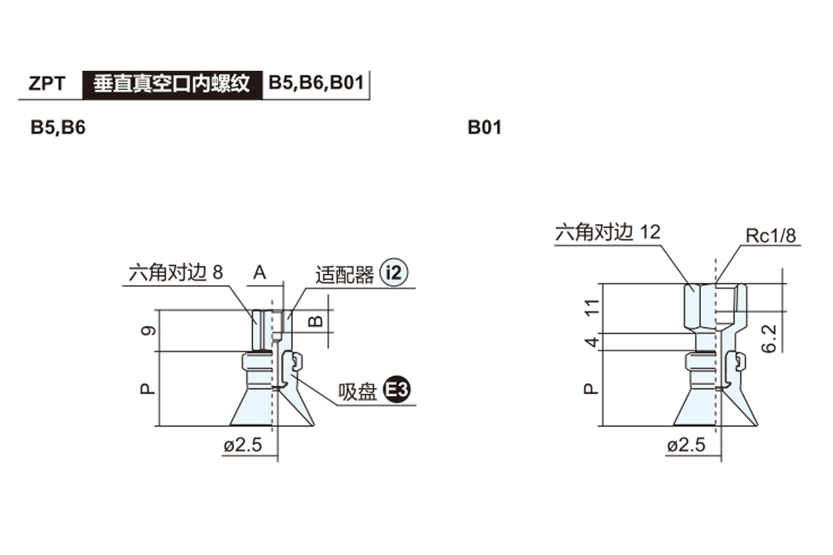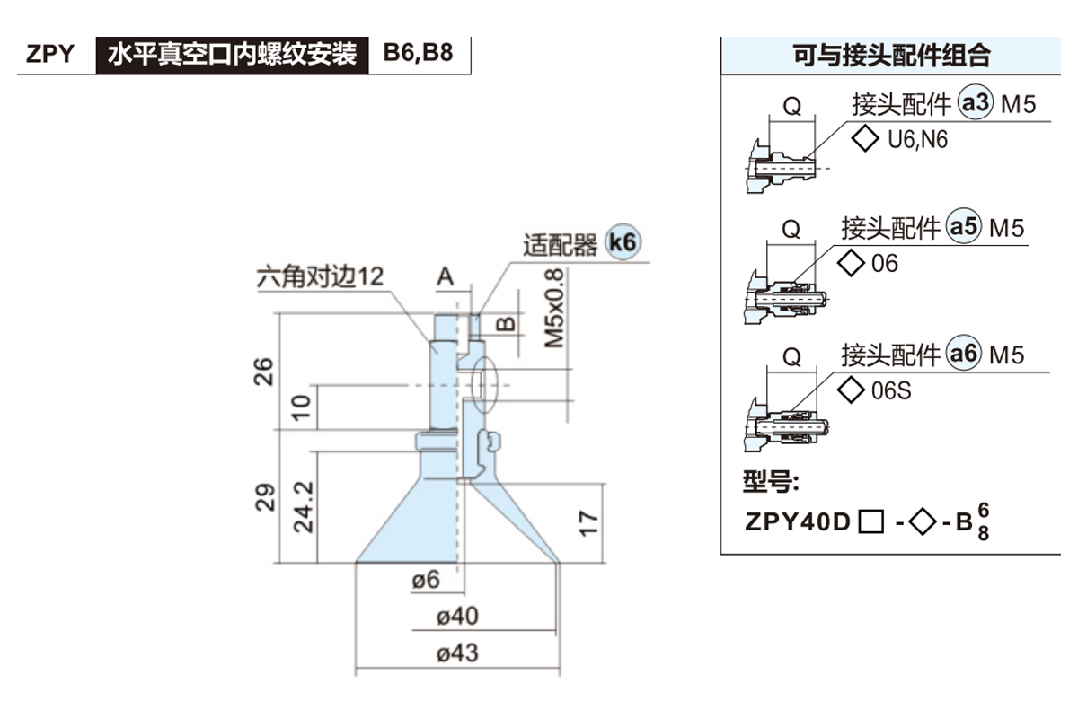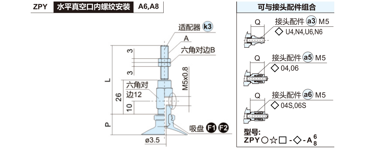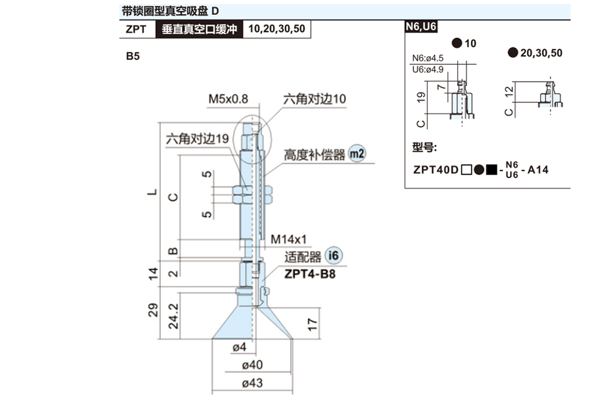 ZP系列带锁圈真空吸盘、带适配器&缓冲支架