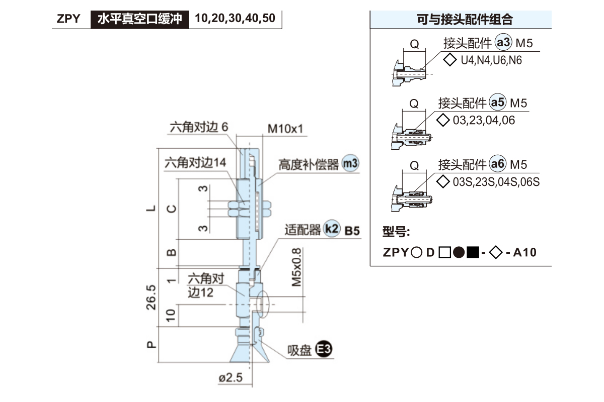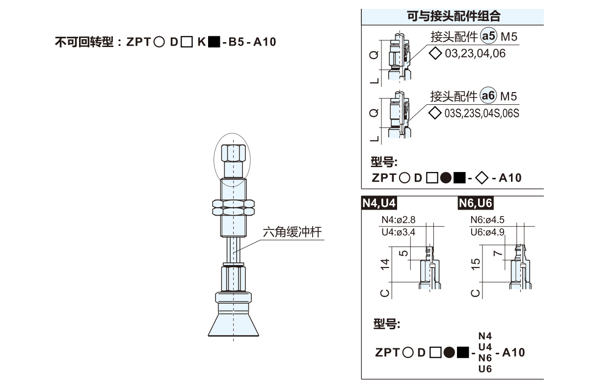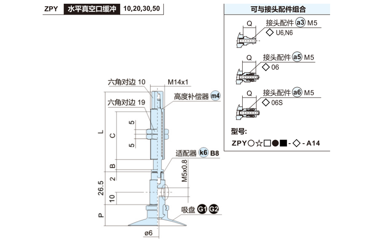 ZP系列带锁圈真空吸盘带适配器&缓冲支架(Ø9~Ø50)